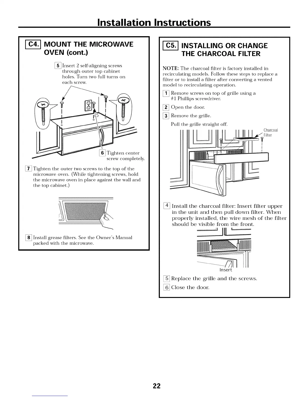 NOTE: The charcoal filter is factory installed in