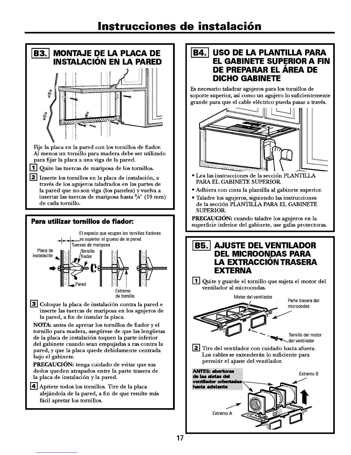 de la placa de instalaci6n toquen la parte inferior