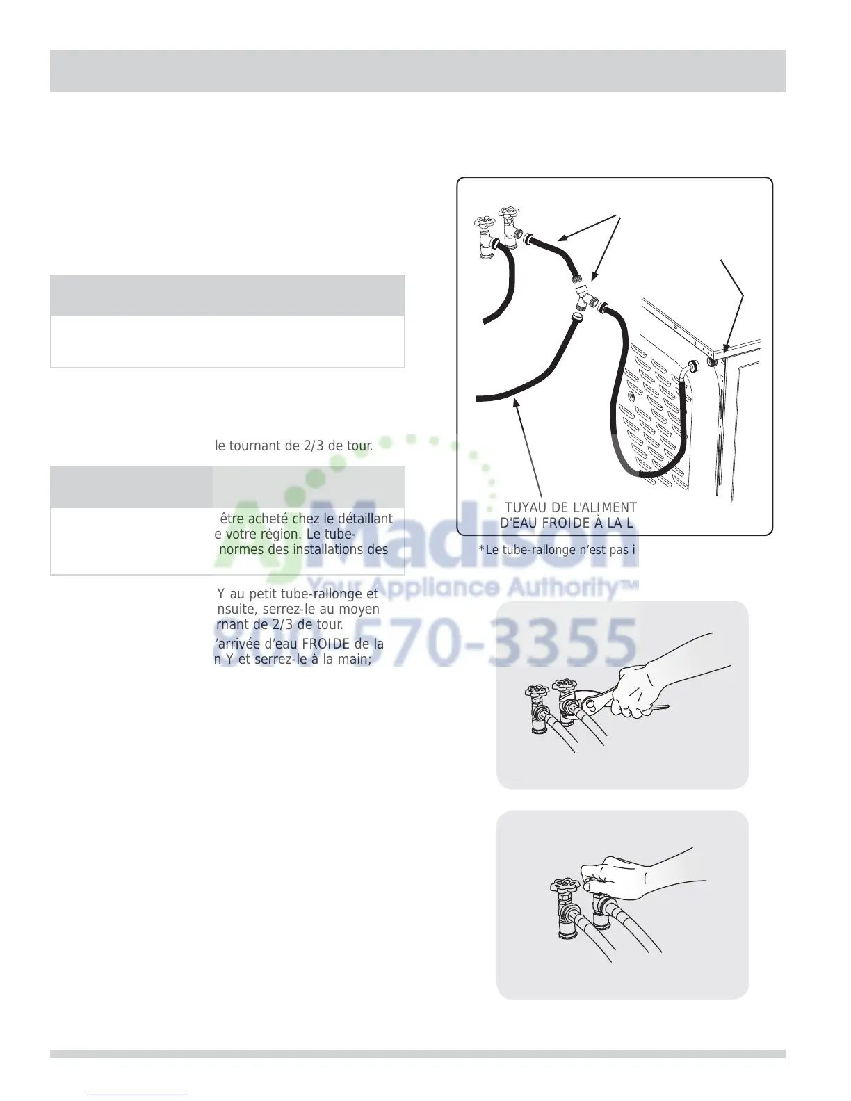 en Y, puis serrez à la main. Raccordez le raccord