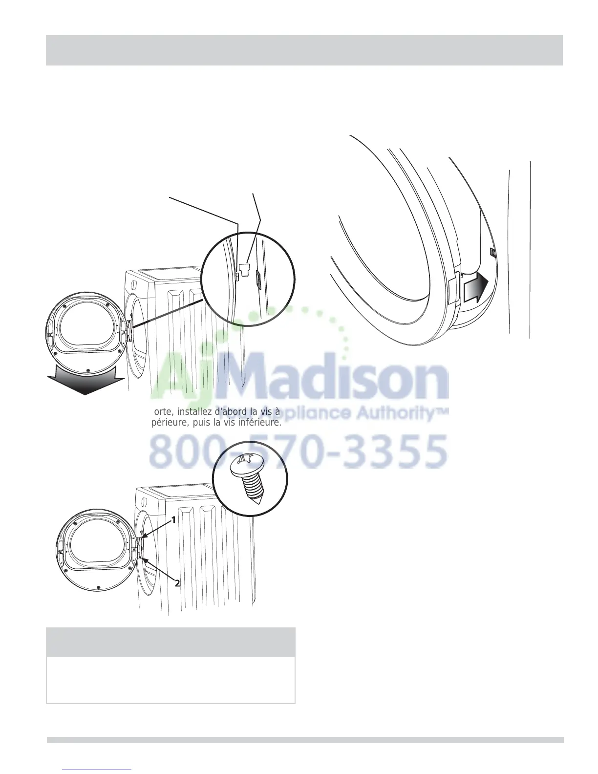 2 Tout en tenant la porte, installez d’abord la vis à