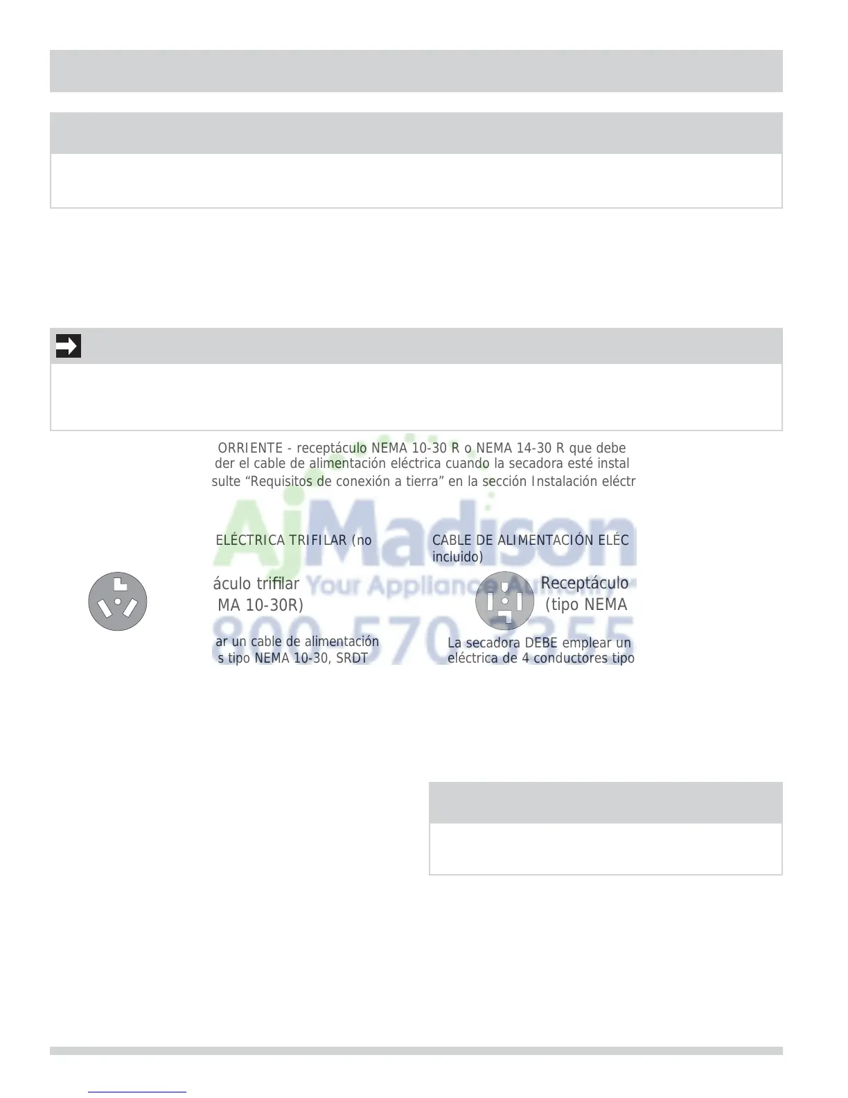 RECEPTÁCULO DEL TOMACORRIENTE - receptáculo NEMA 10-30 R o NEMA 14-30 R que debe estar ubicado en un