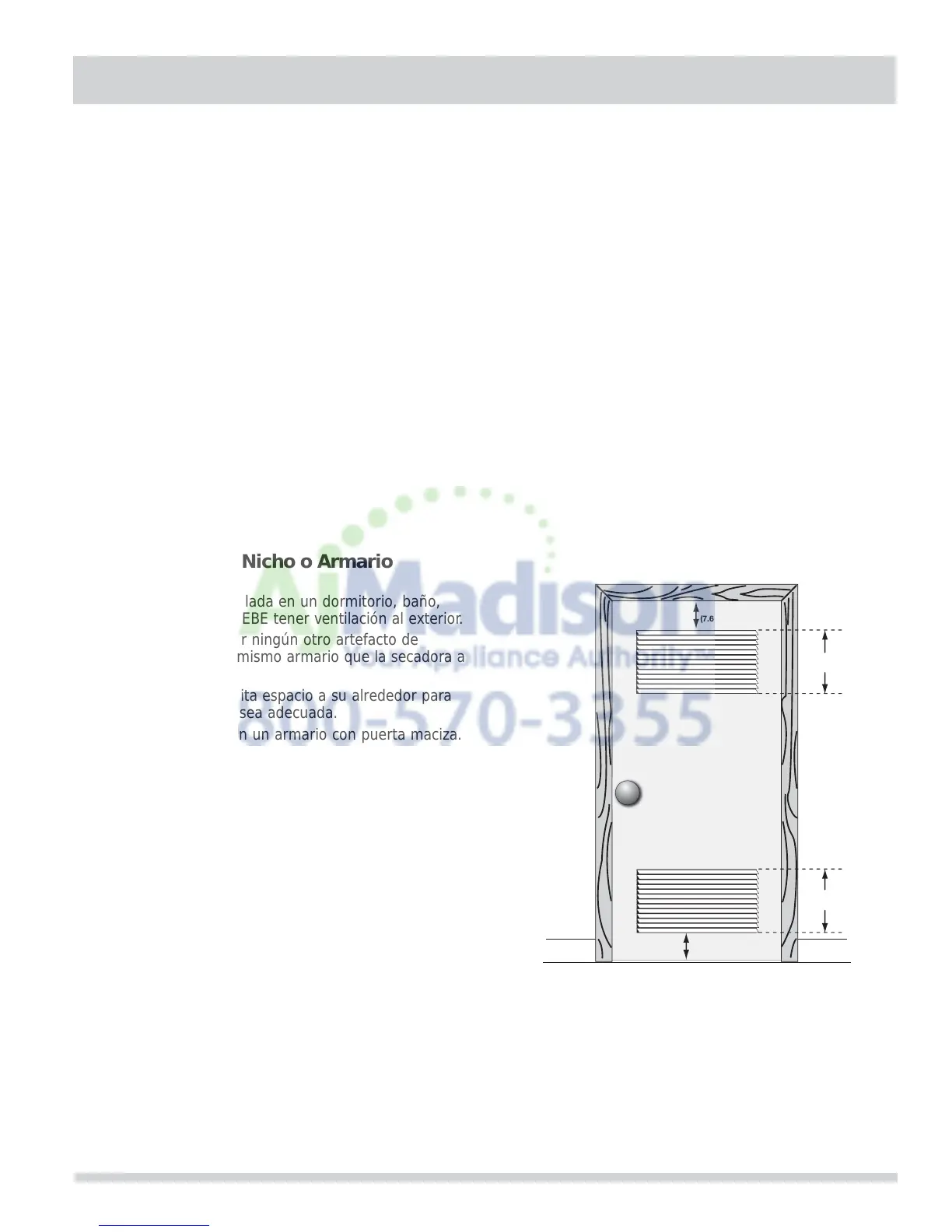 4 Ventilación requerida en la puerta del armario: Se