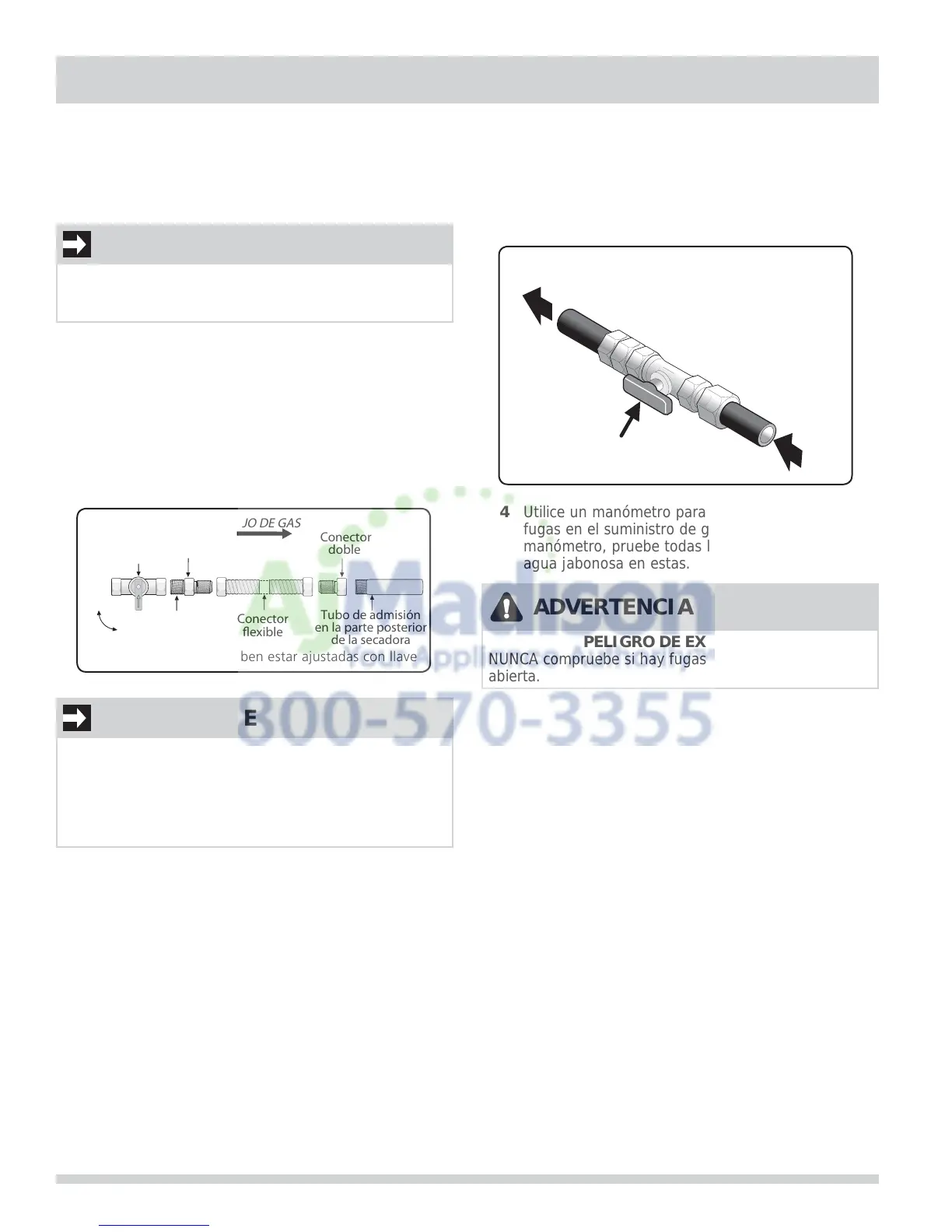 NUNCA compruebe si hay fugas de gas con una llama