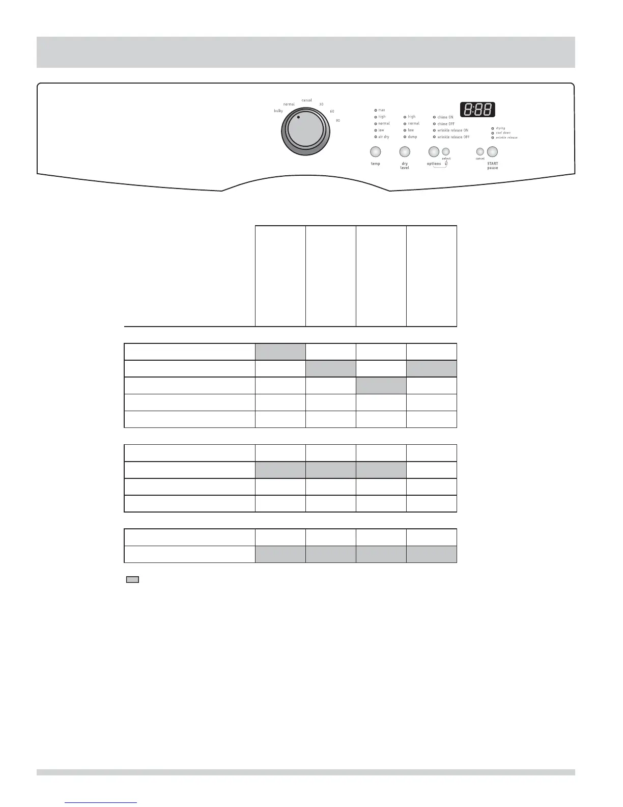 These Temperatures, Dryness levels and Options are available with the following cycles: