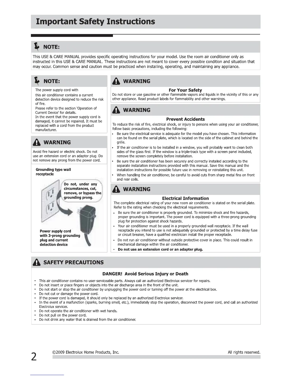 Frigidaire FFRA0511R1 - Important Safety Instructions; For Your Safety; Prevent Accidents; Electrical Information