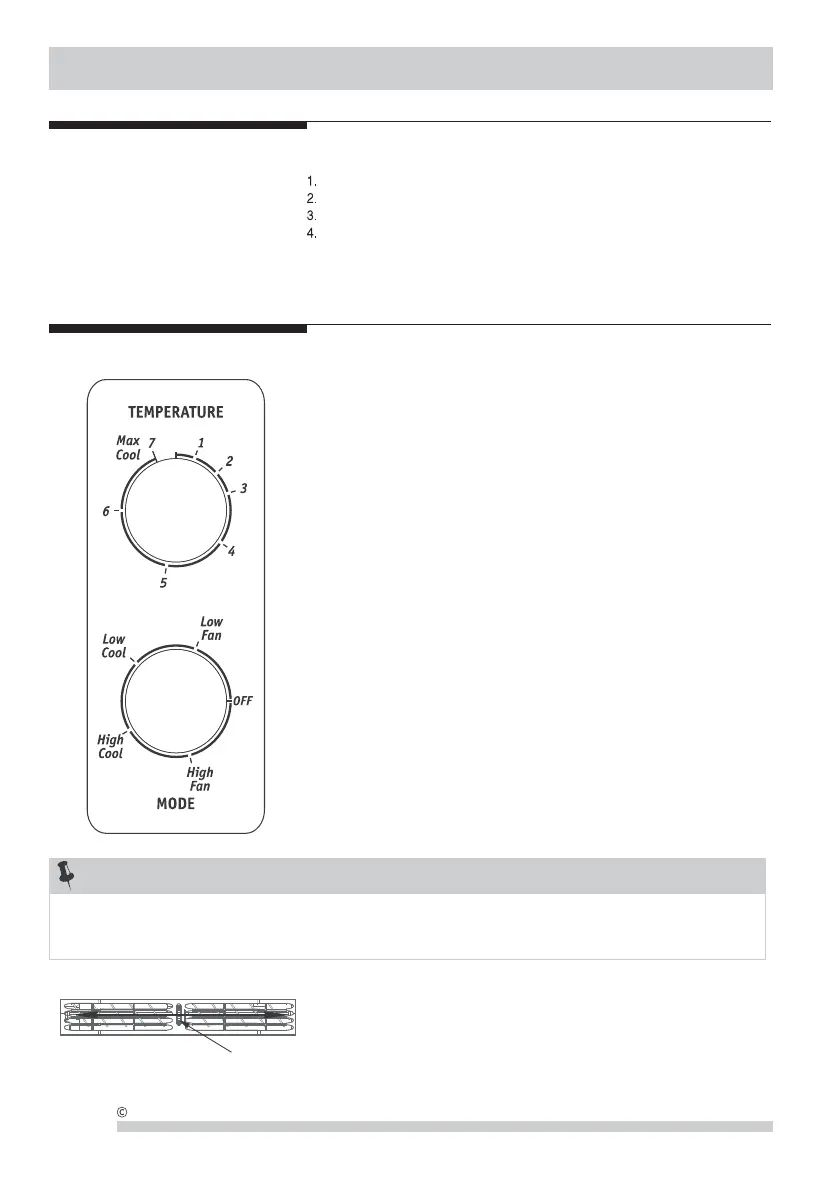 Rotate the temperature selector clockwise for higher cool setting. Higher cool