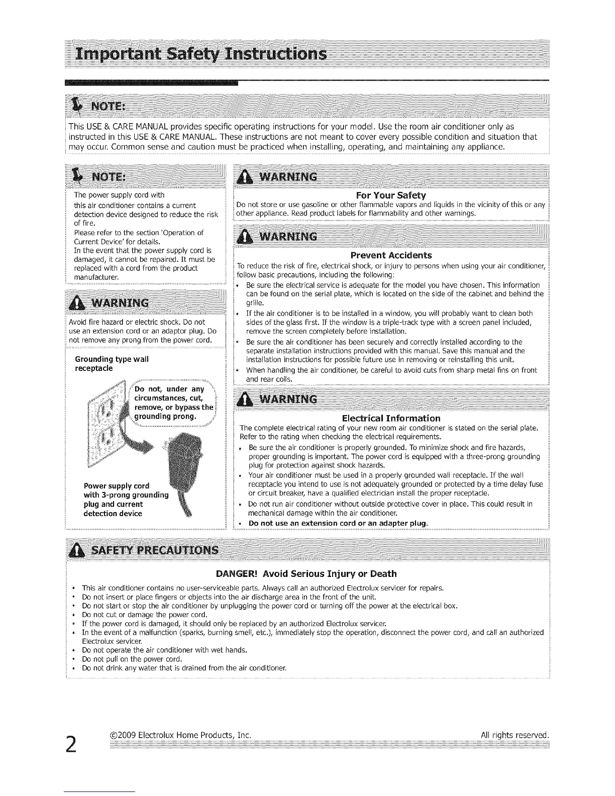 This air conditioner contains no user-serviceable parts. Always call an authorized Electrolux servicer for repairs.