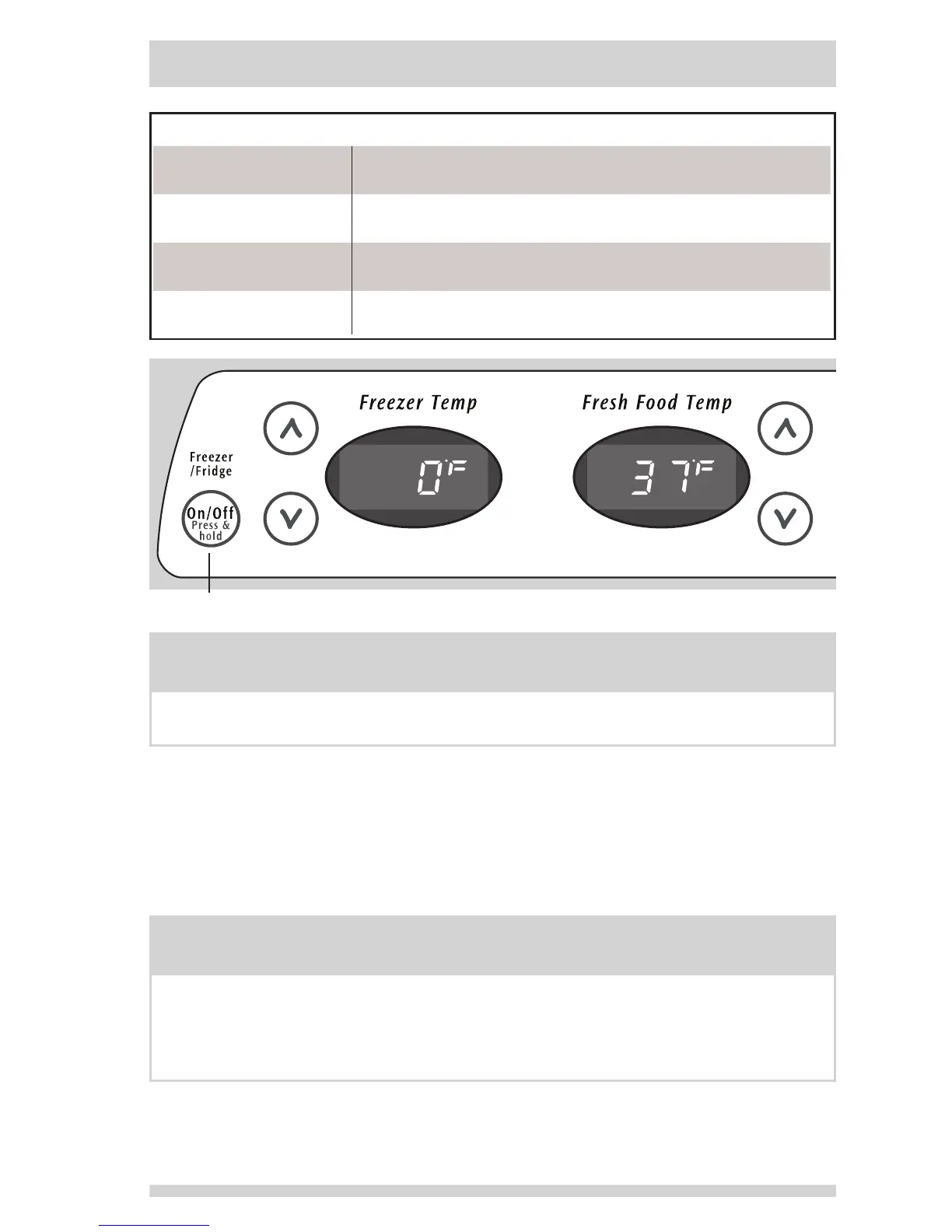 Pressing the On/Off button on the control panel disables your refrigerator’s cooling system