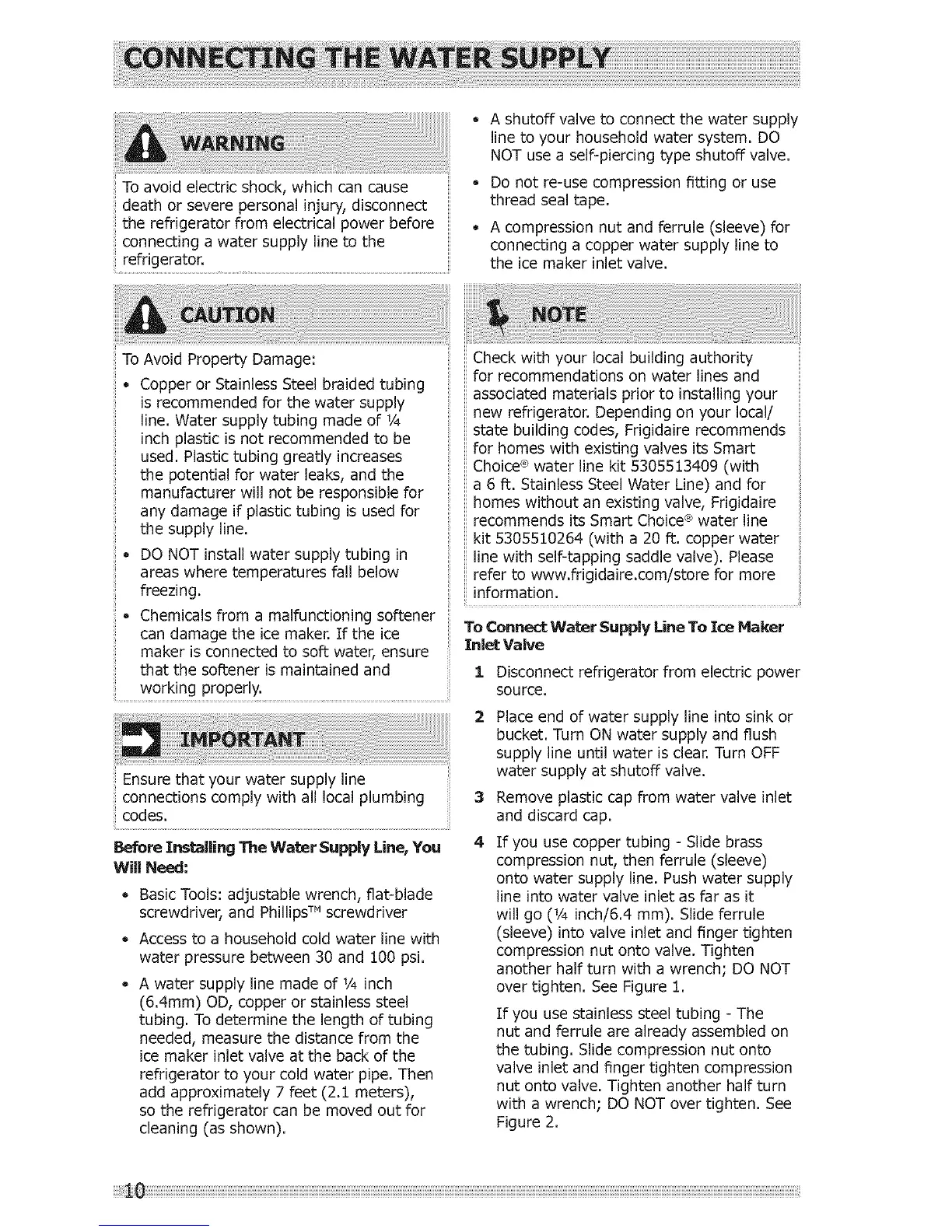 homes without an existing valve, Frigidaire