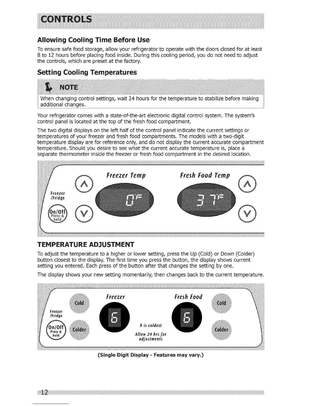 8 to 12 hours before placing food inside. During this cooling period, you do not need to adjust
