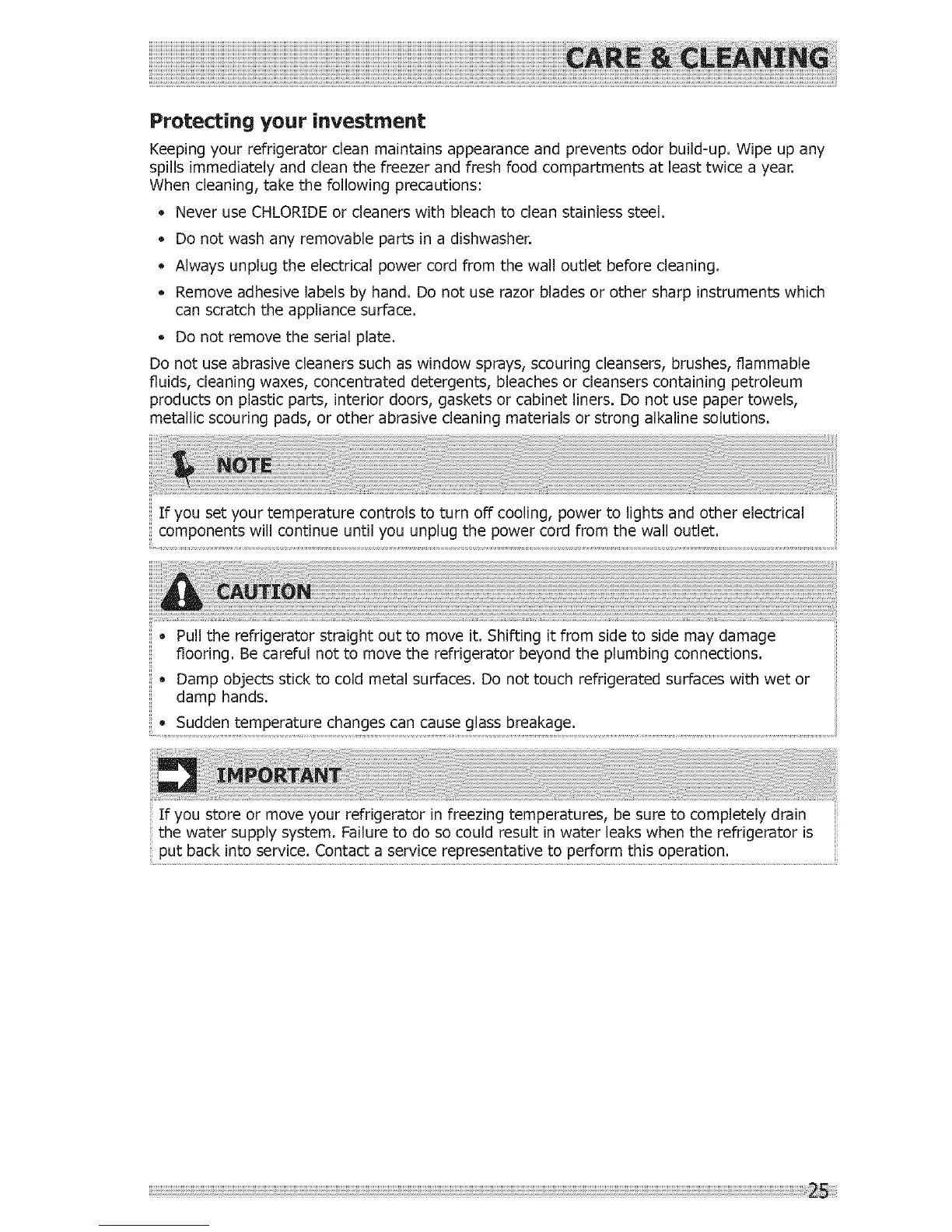 spills immediately and clean the freezer and fresh food compartments at least twice a year.
