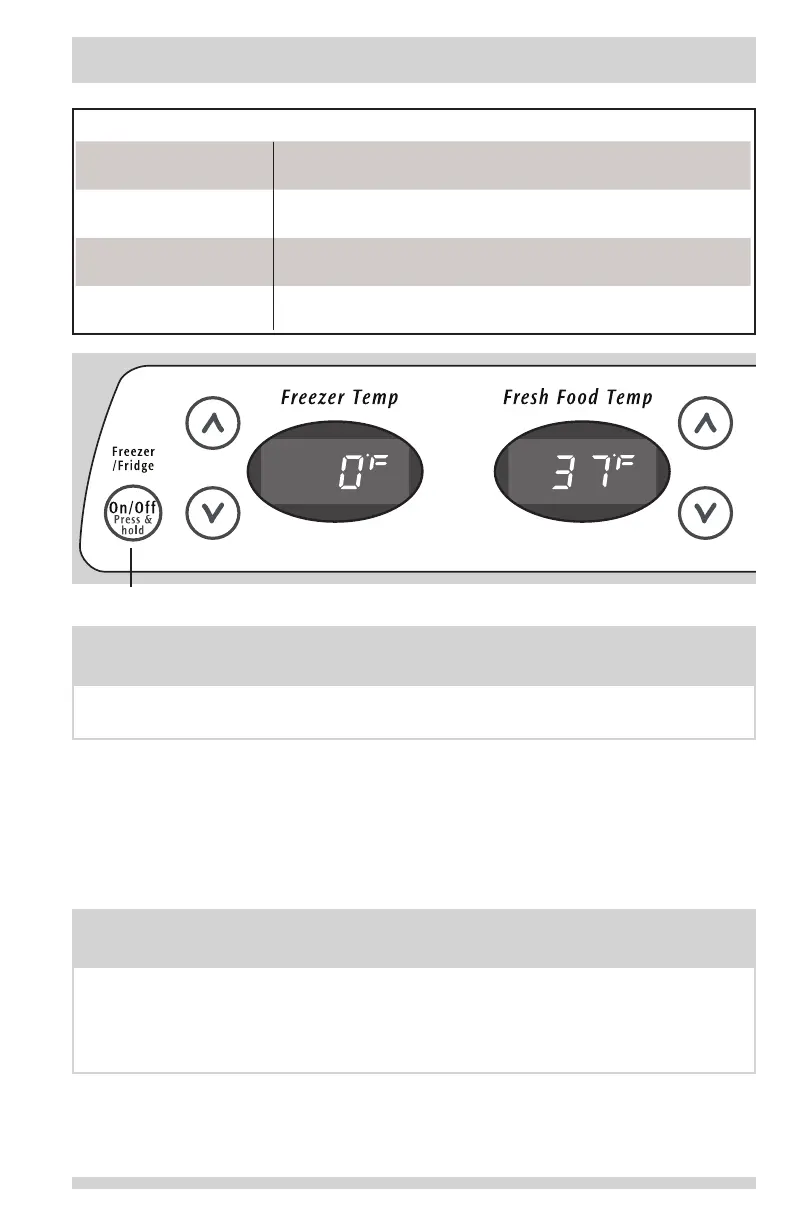 Pressing the On/Off button on the control panel disables your refrigerator’s cooling system
