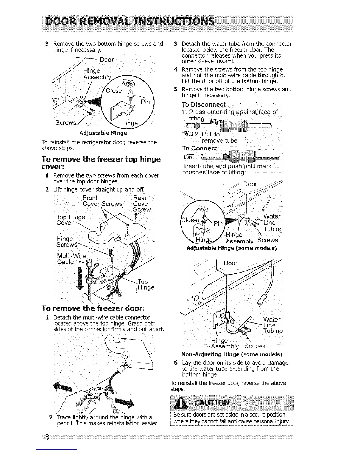 To reinstall the freezer door, reverse the above