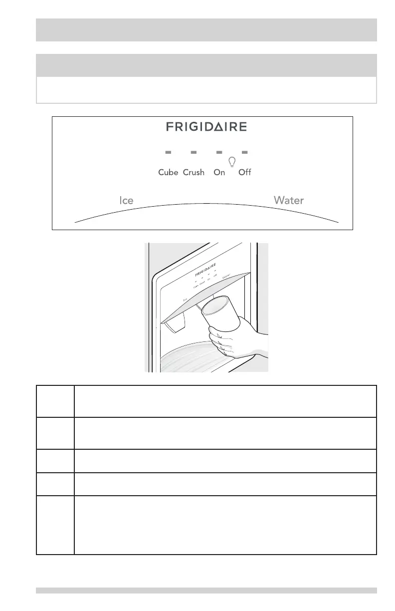 Cube Press the Cube Touch Pad to get cubed ice. A red indicator will appear above the