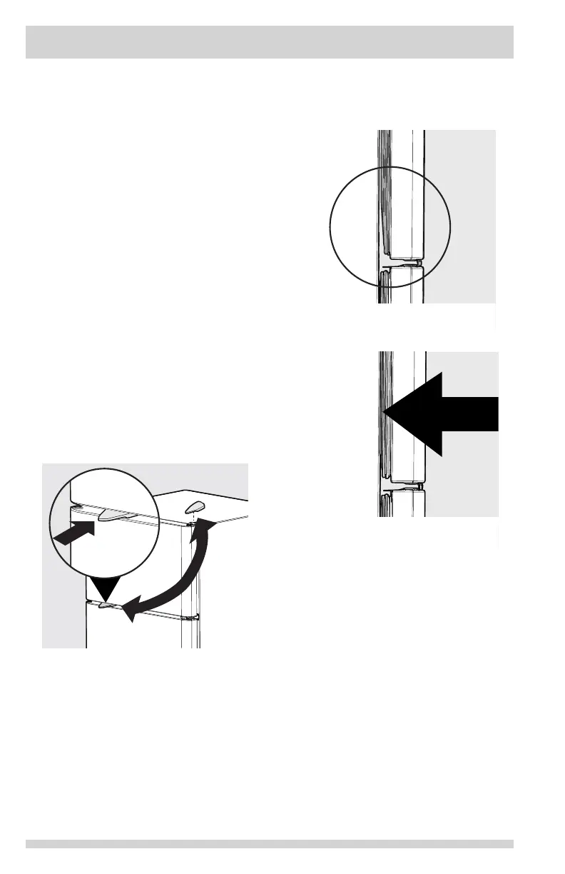 16. Close freezer door. Lift up on handle side
