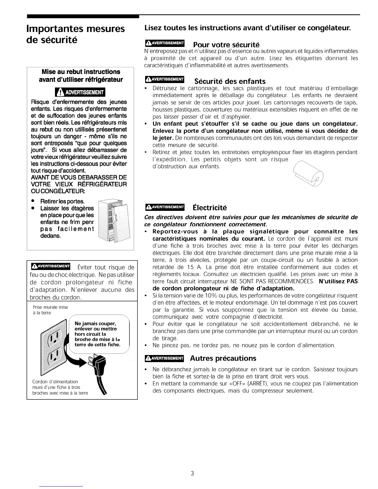 Lisez toutes les instructions avant d'utiliser ce congelateur.