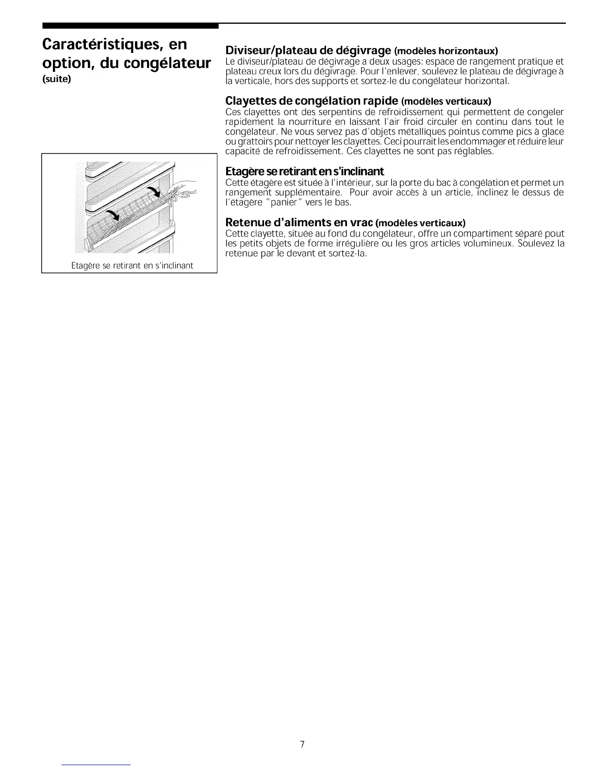 Clayettes de congelation rapide (modeles verticaux)