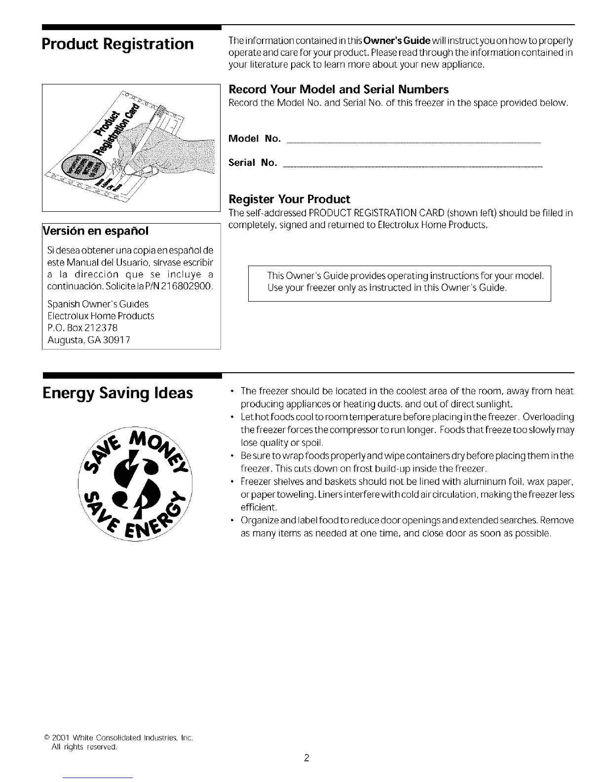 Record the Model No, and Serial No. of this freezer in the space provided below.