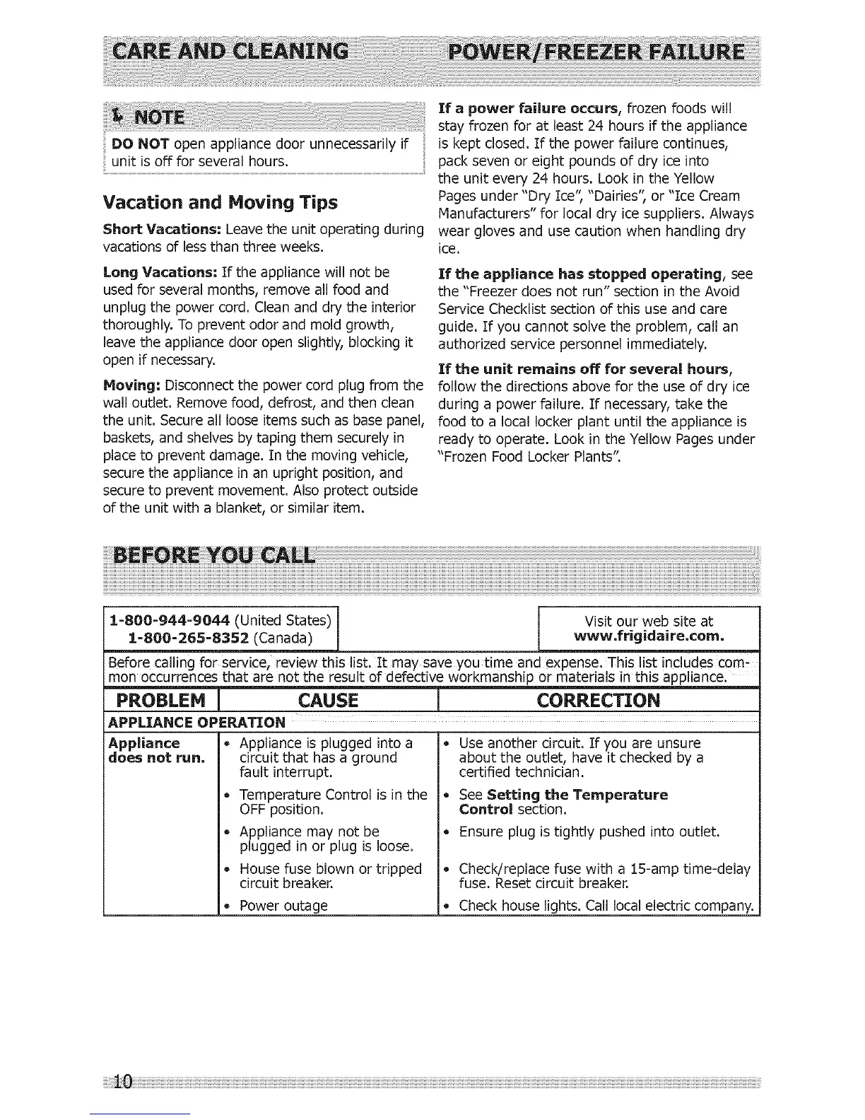 :!.-800-265-8352 (Canada) www.frigidaire,corn,