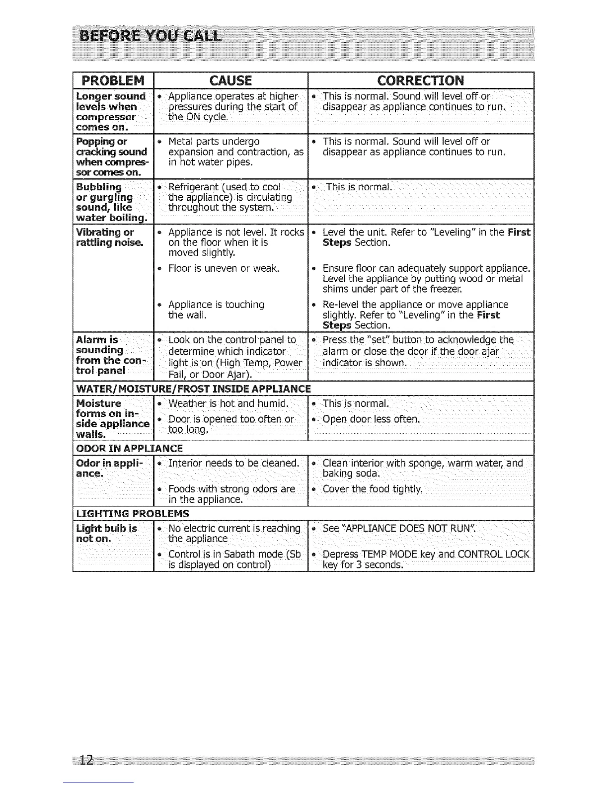 Longer sound Appliance Operates at higher *This is normali Sound will level Off or