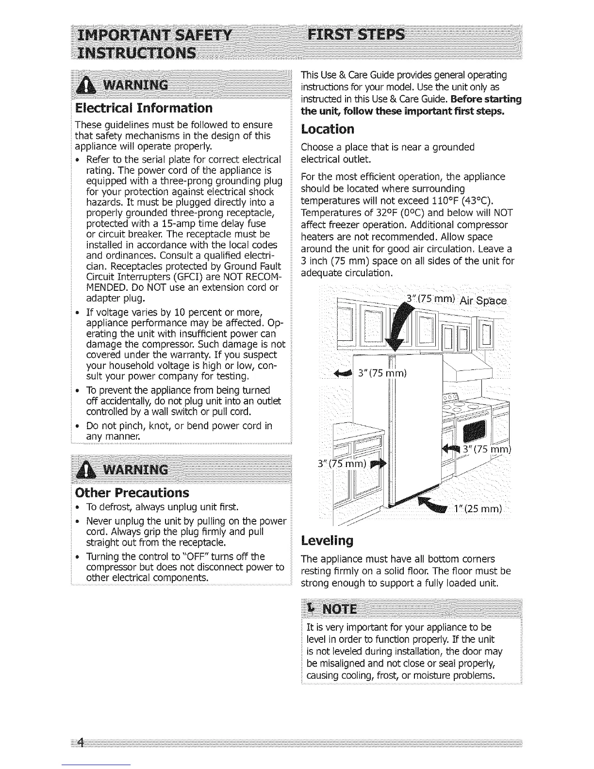 instructed in this Use & Care Guide. Before starting