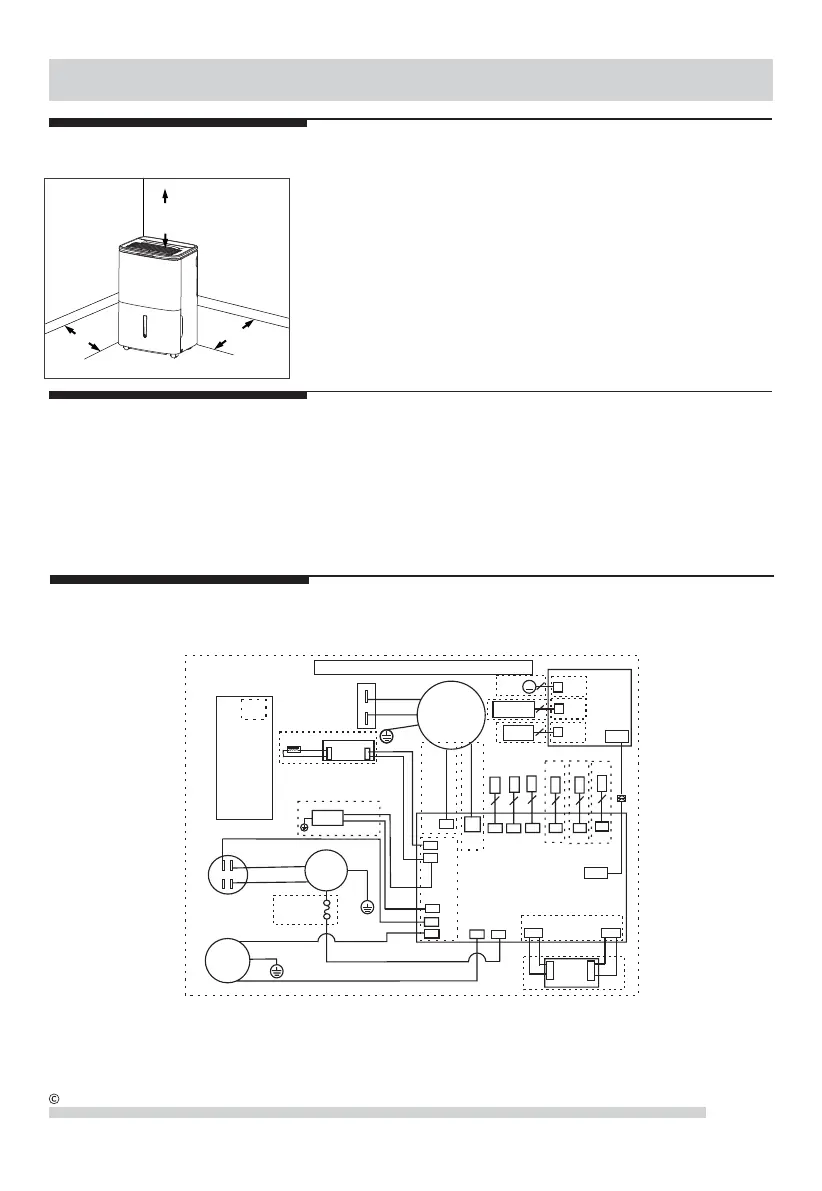 2. Place dehumidifier in a location that does not restrict the airflow of the air intake and air