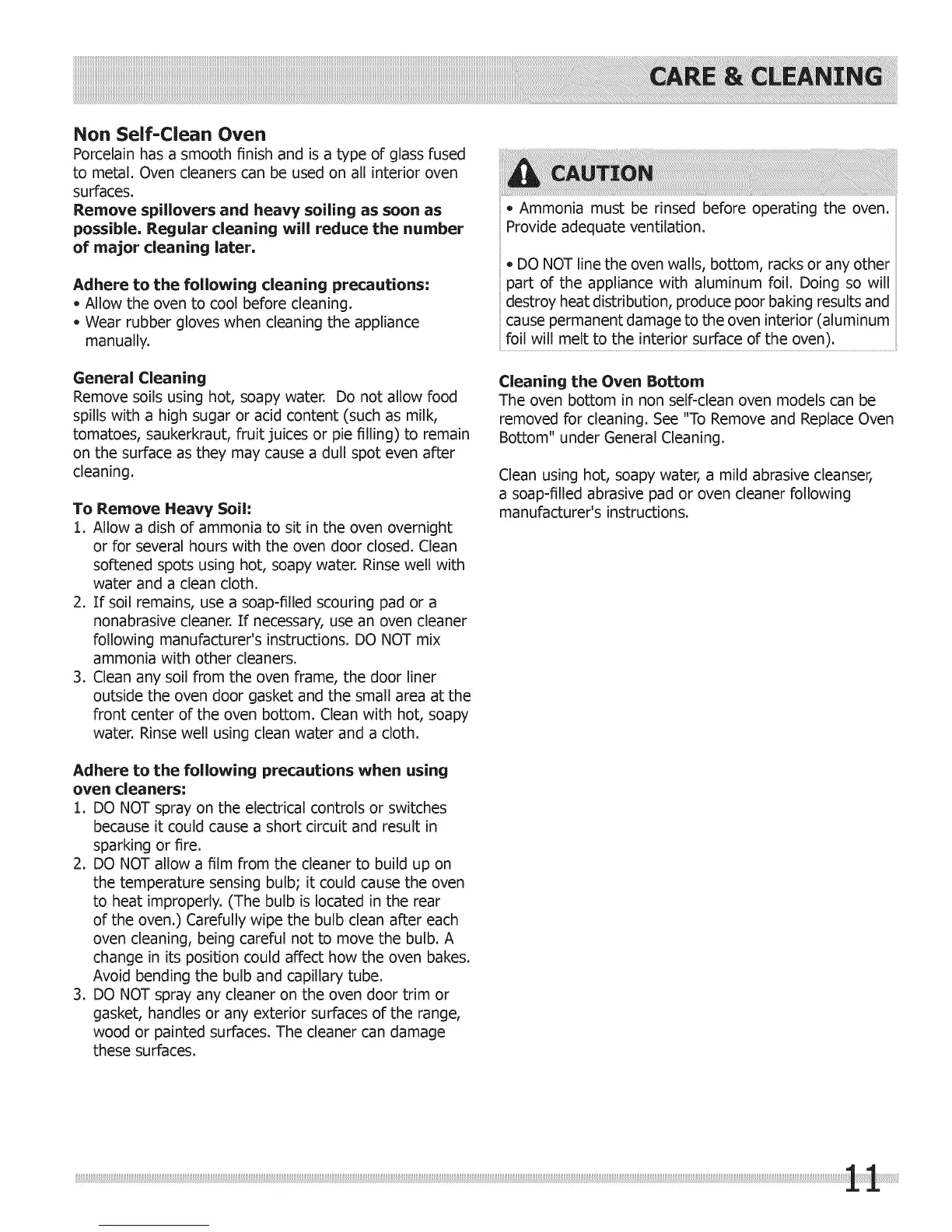 The oven bottom in non self-clean oven models can be
