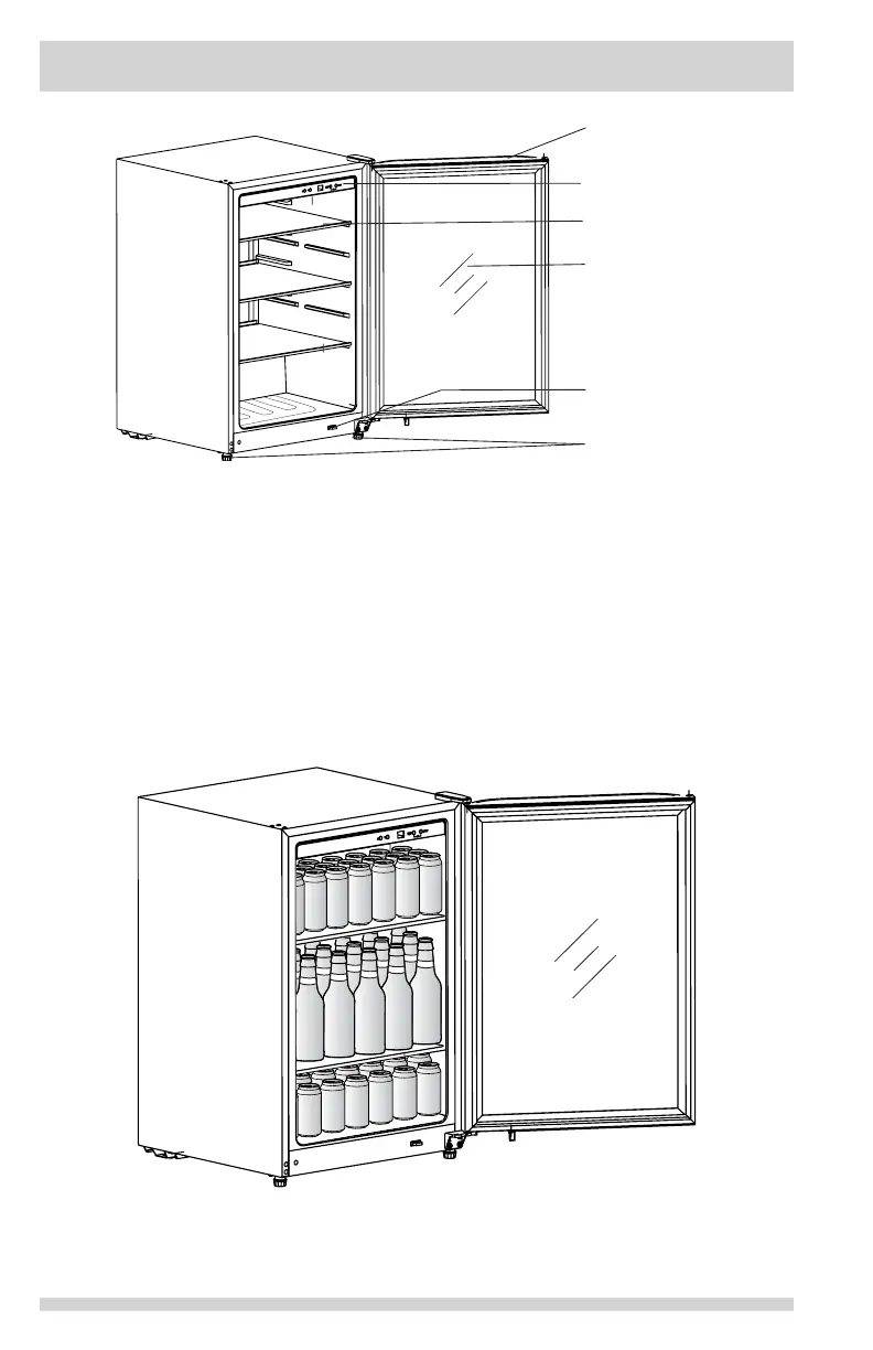 discarded. The Beverage Center comes equipped with three glass shelves.