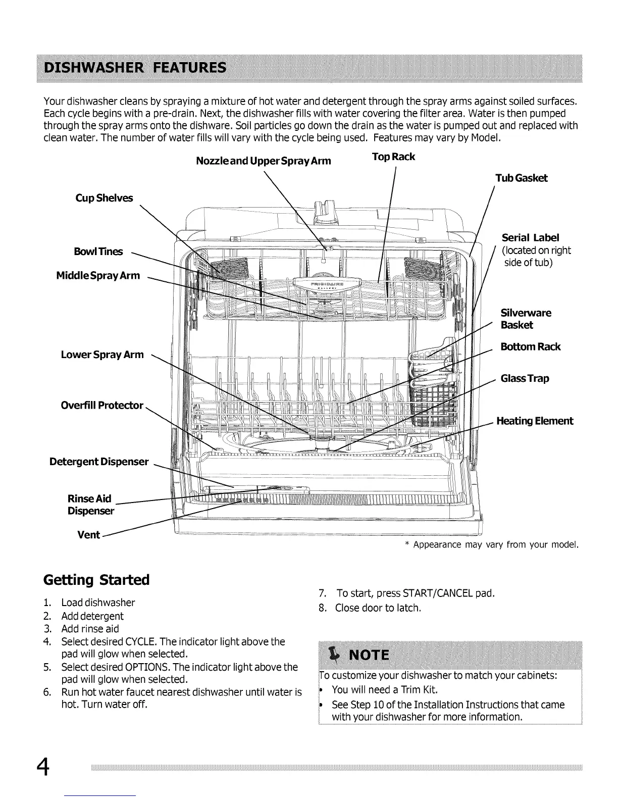 clean water. The number of water fills will vary with the cycle being used. Features may vary by Model.