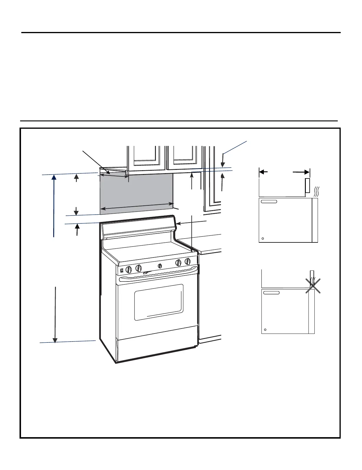 • The space between the cabinets must be 30" (76.2 cm) wide and free of obstructions.