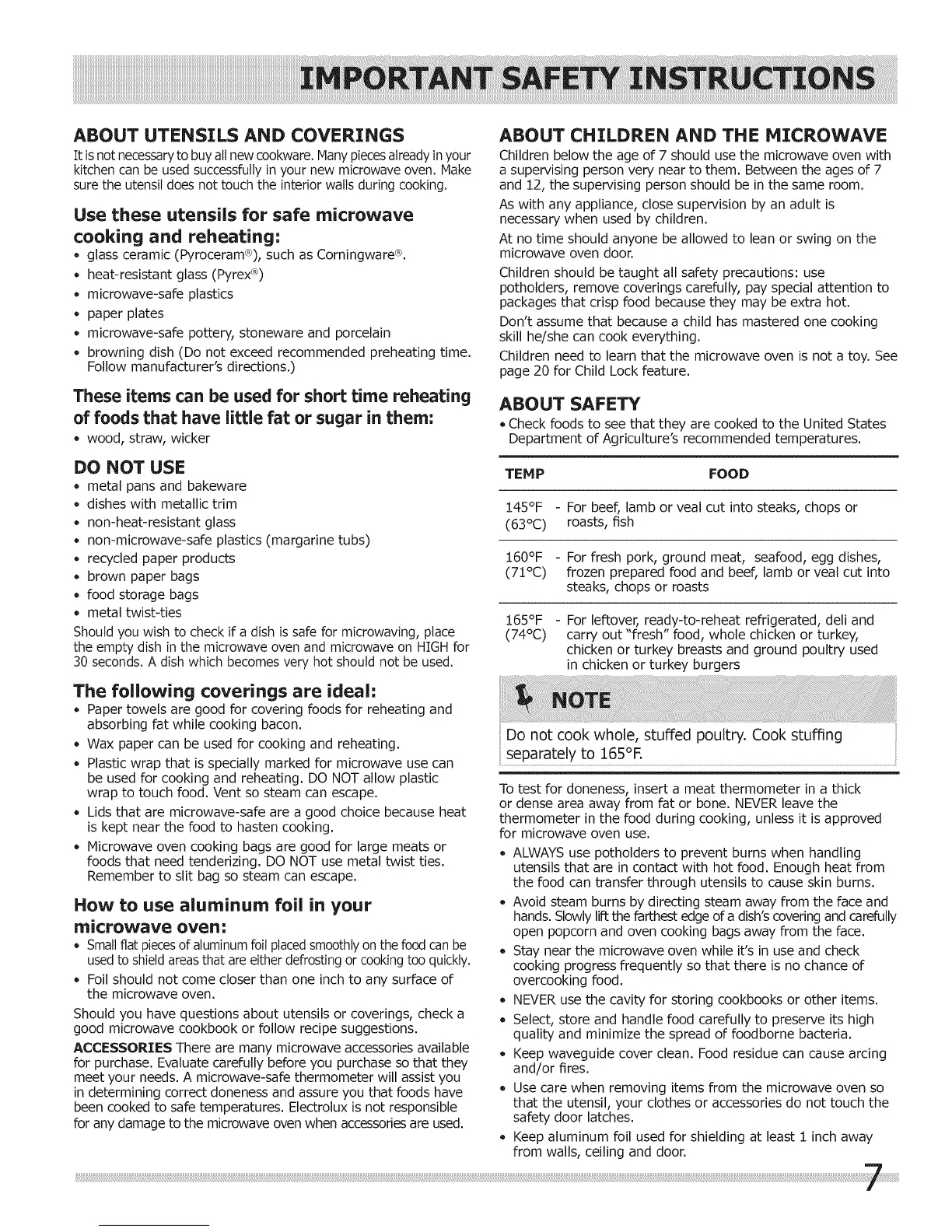 been cooked to safe temperatures. Electrolux is not responsible