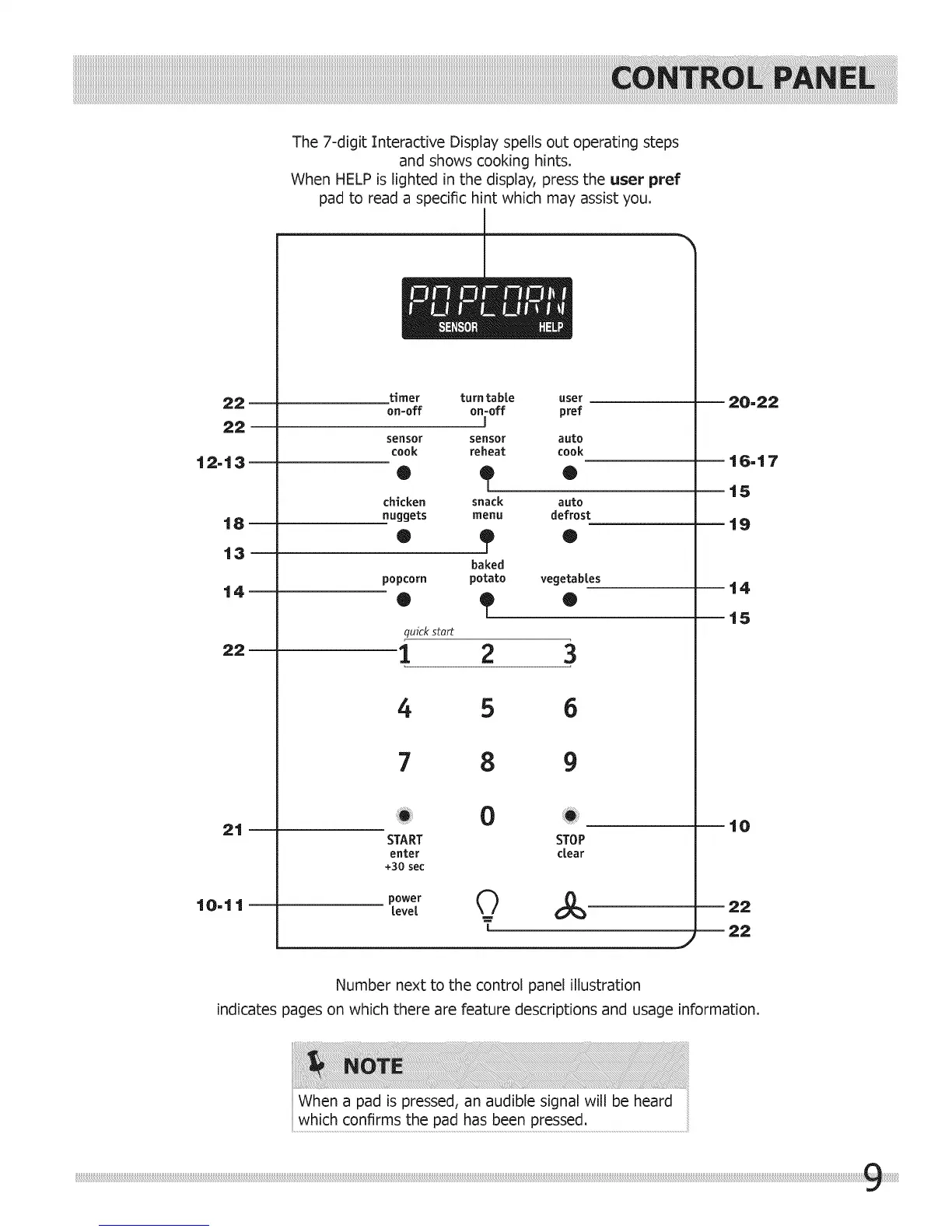 Number next to the control panel illustration
