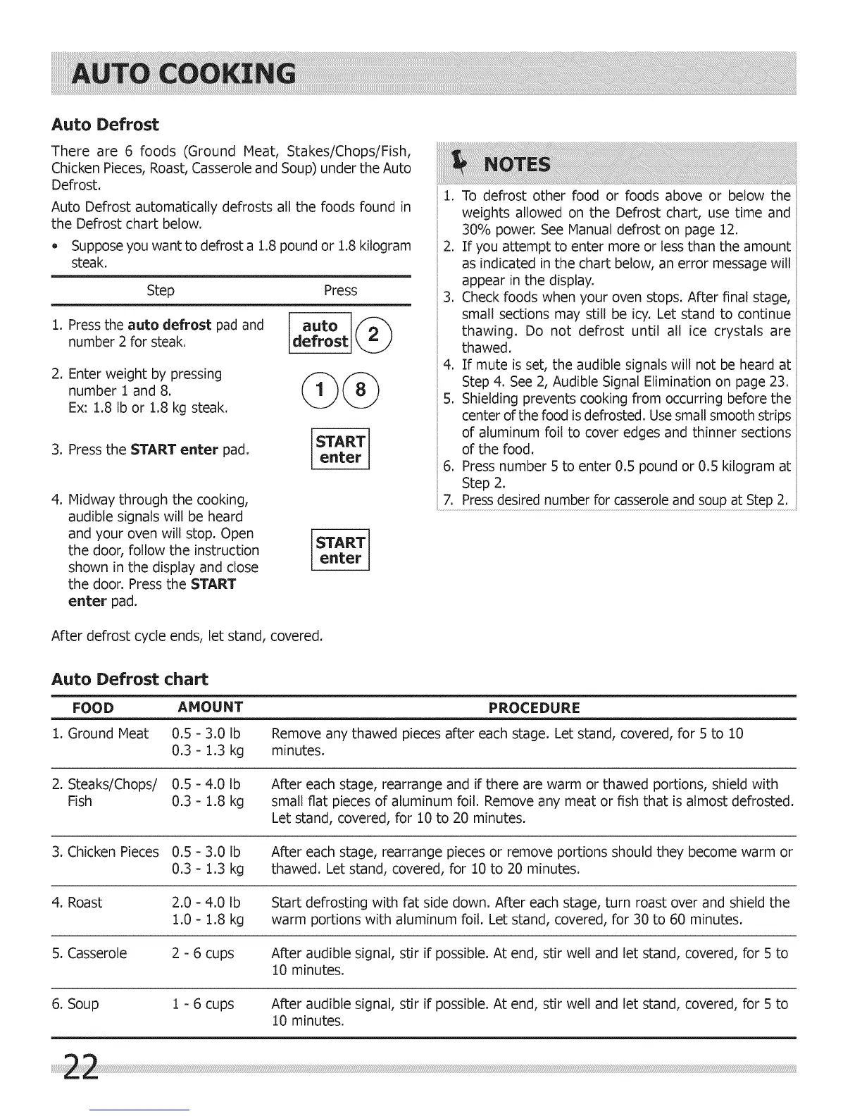 Auto Defrost automatically defrosts all the foods found in