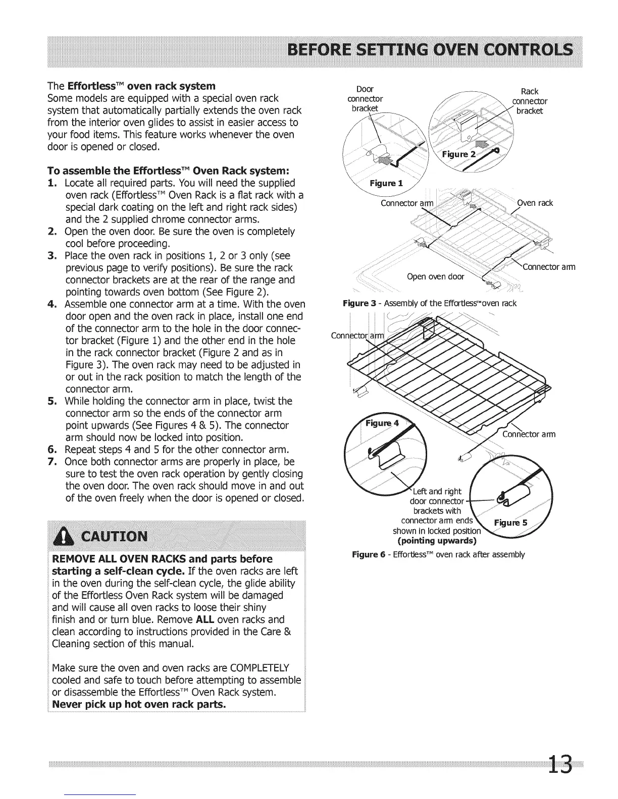 To assemble the Effortless TM Oven Rack system: