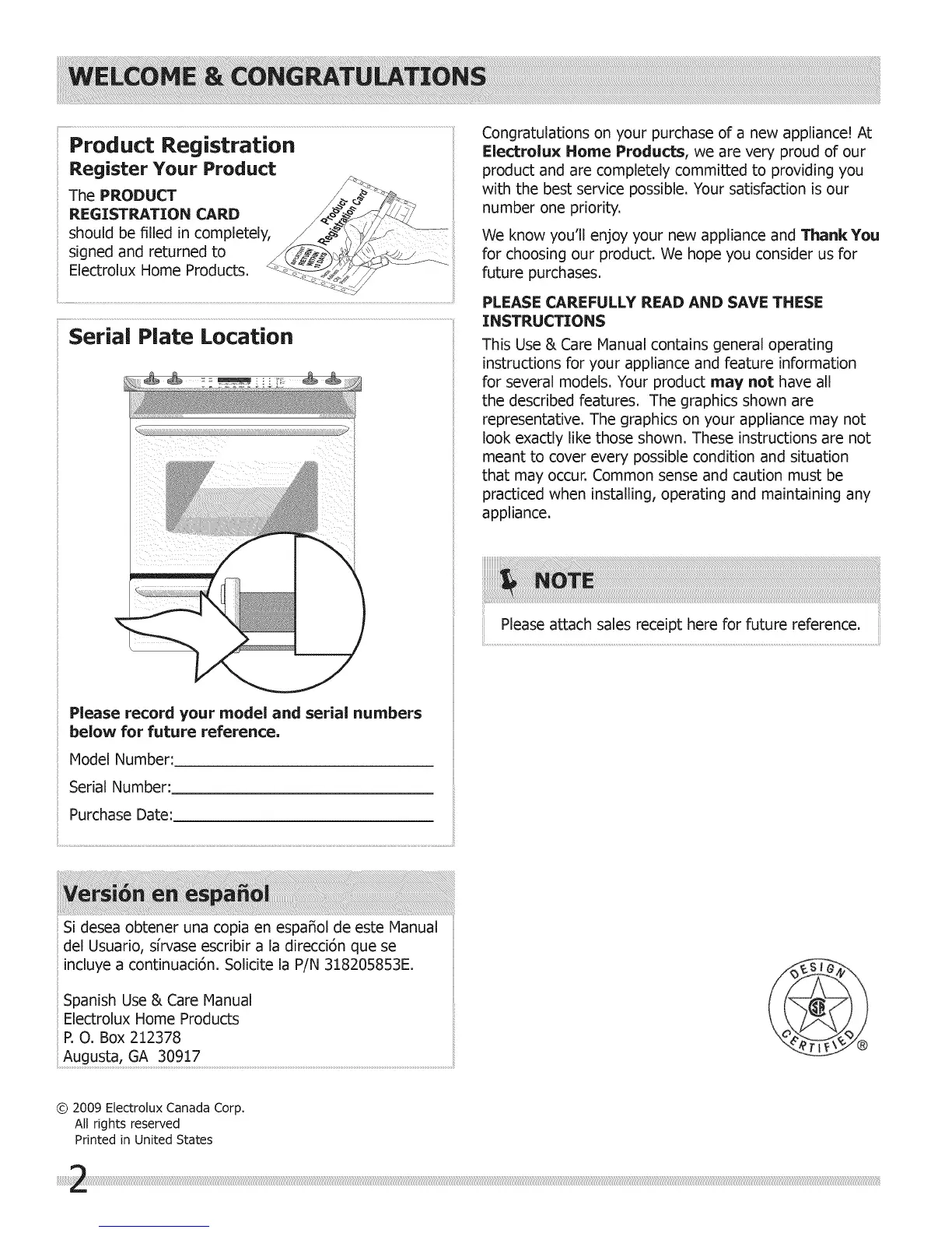 © 2009 Electrolux Canada Corp,