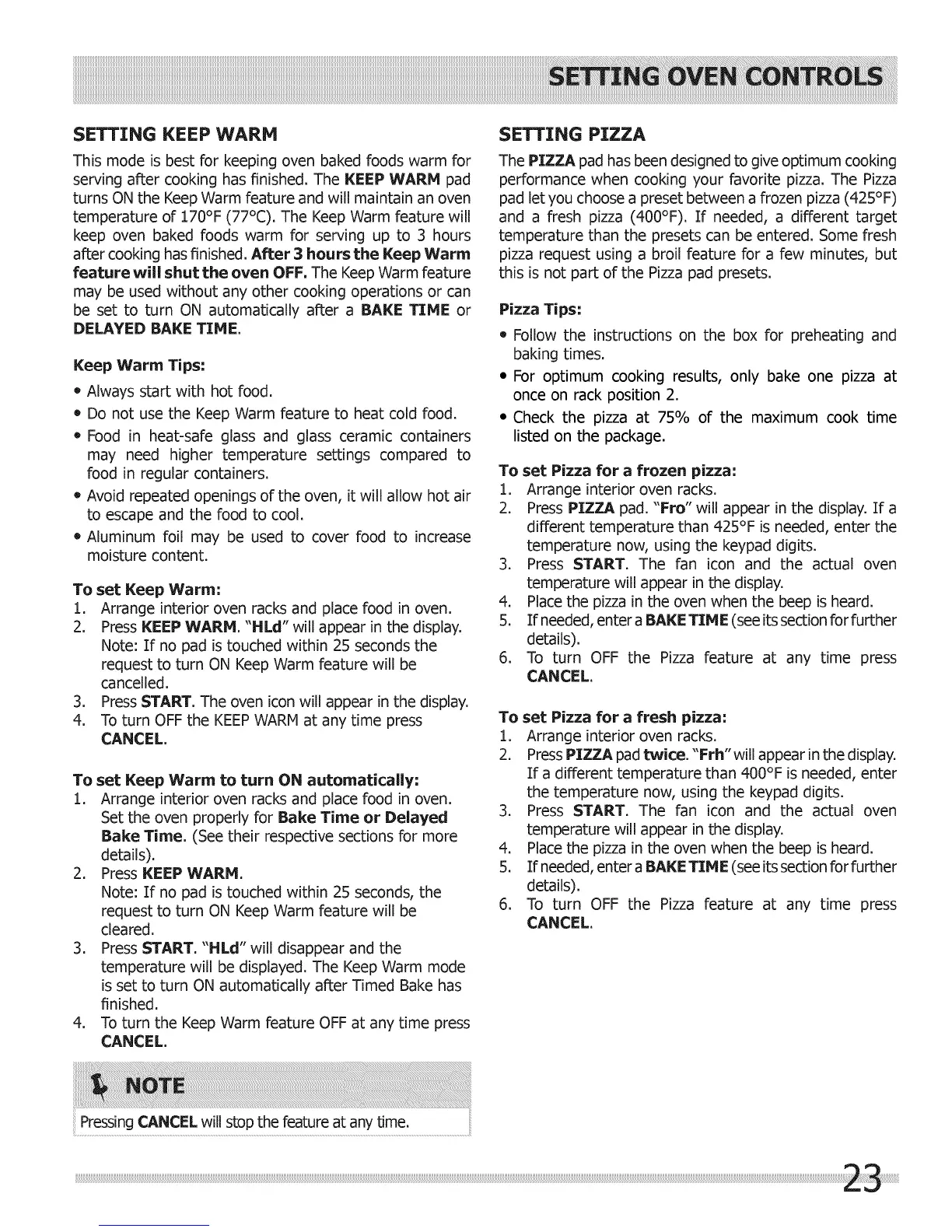 2. Press PIZZA pad. "Fro" will appear in the display. If a