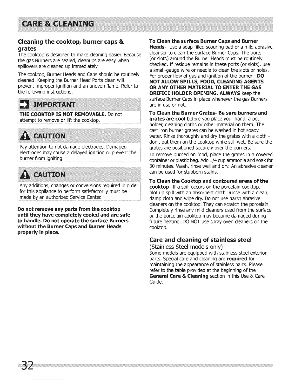 To Clean the Burner Grates= Be sure burners and