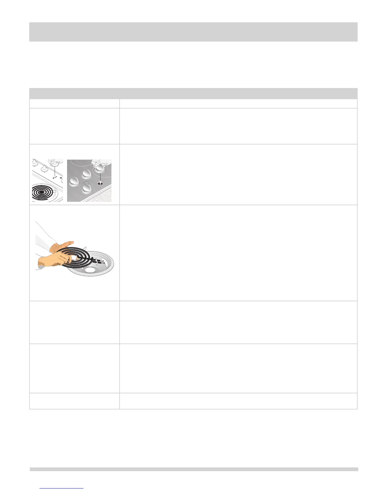 will burn off. Food spilled on a cool element can be cleaned with a damp cloth—any remaining