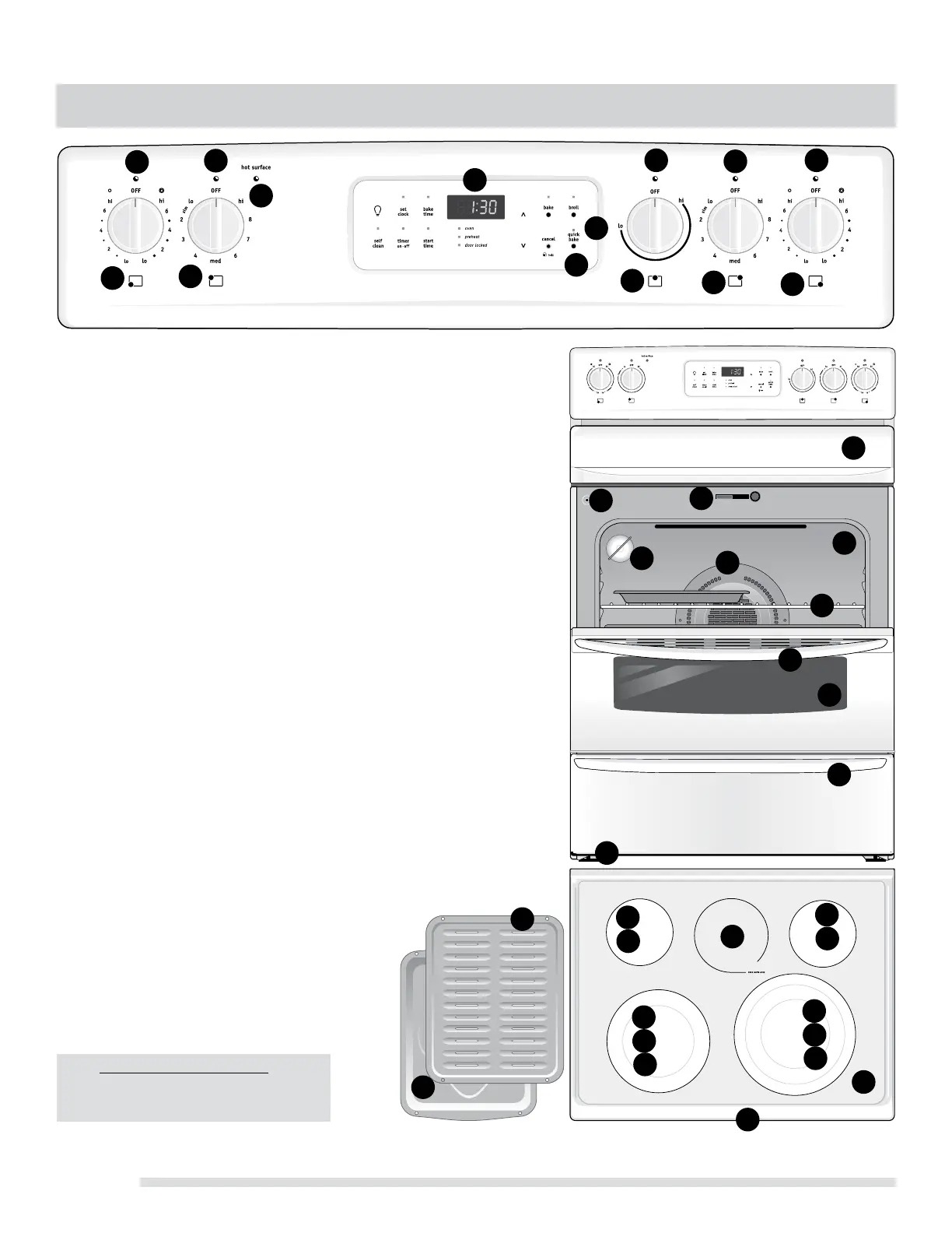 21. Ceramic smoothtop (elements, styles and color will vary by model).