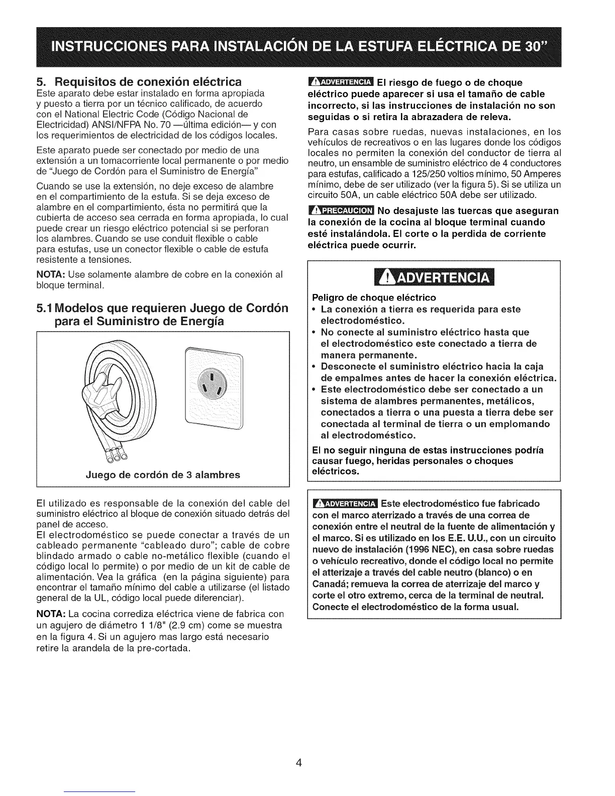 nuevo de instalaci6n (1996 NEC), en casa sobre ruedas