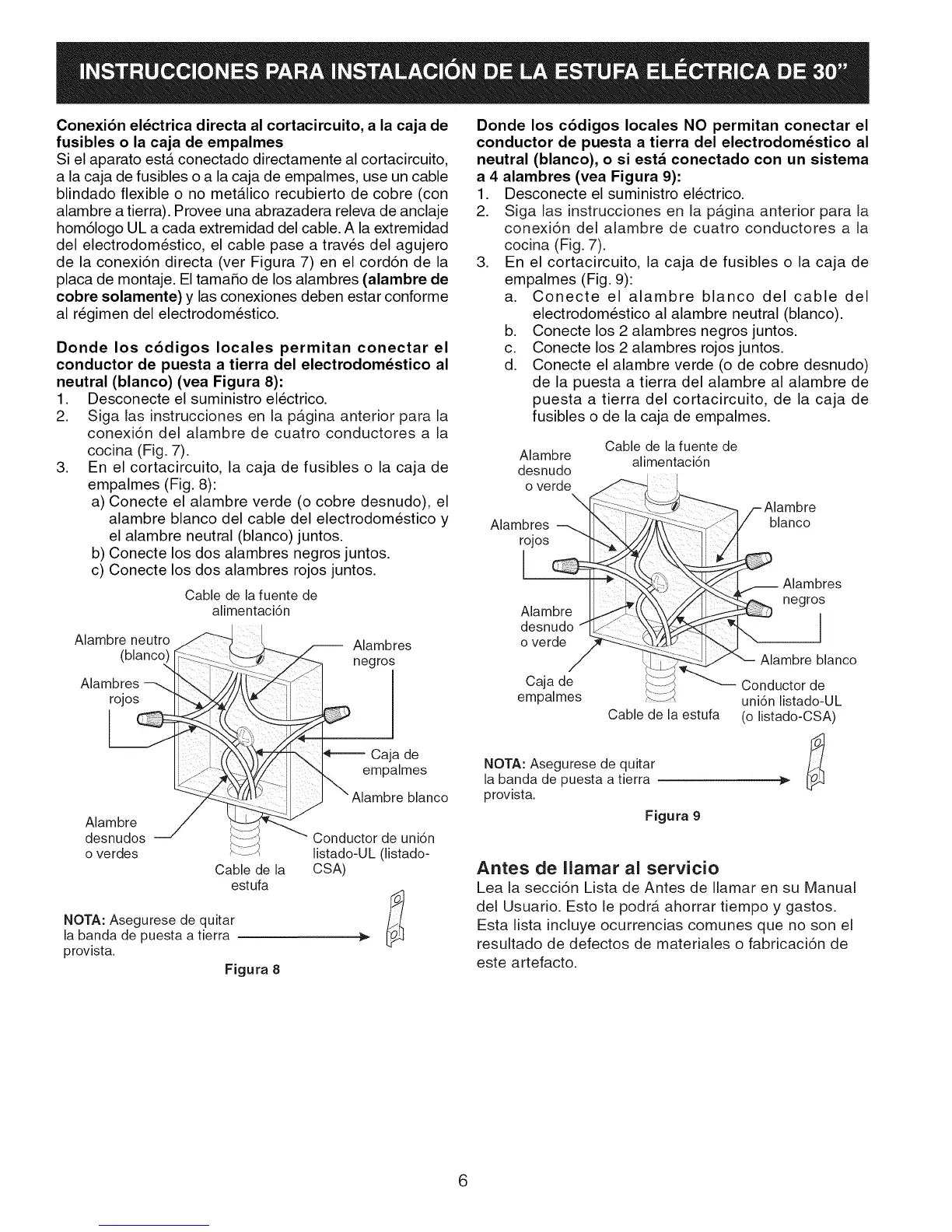 Conexi6n el_ctrica directa al cortacircuito, a la caja de