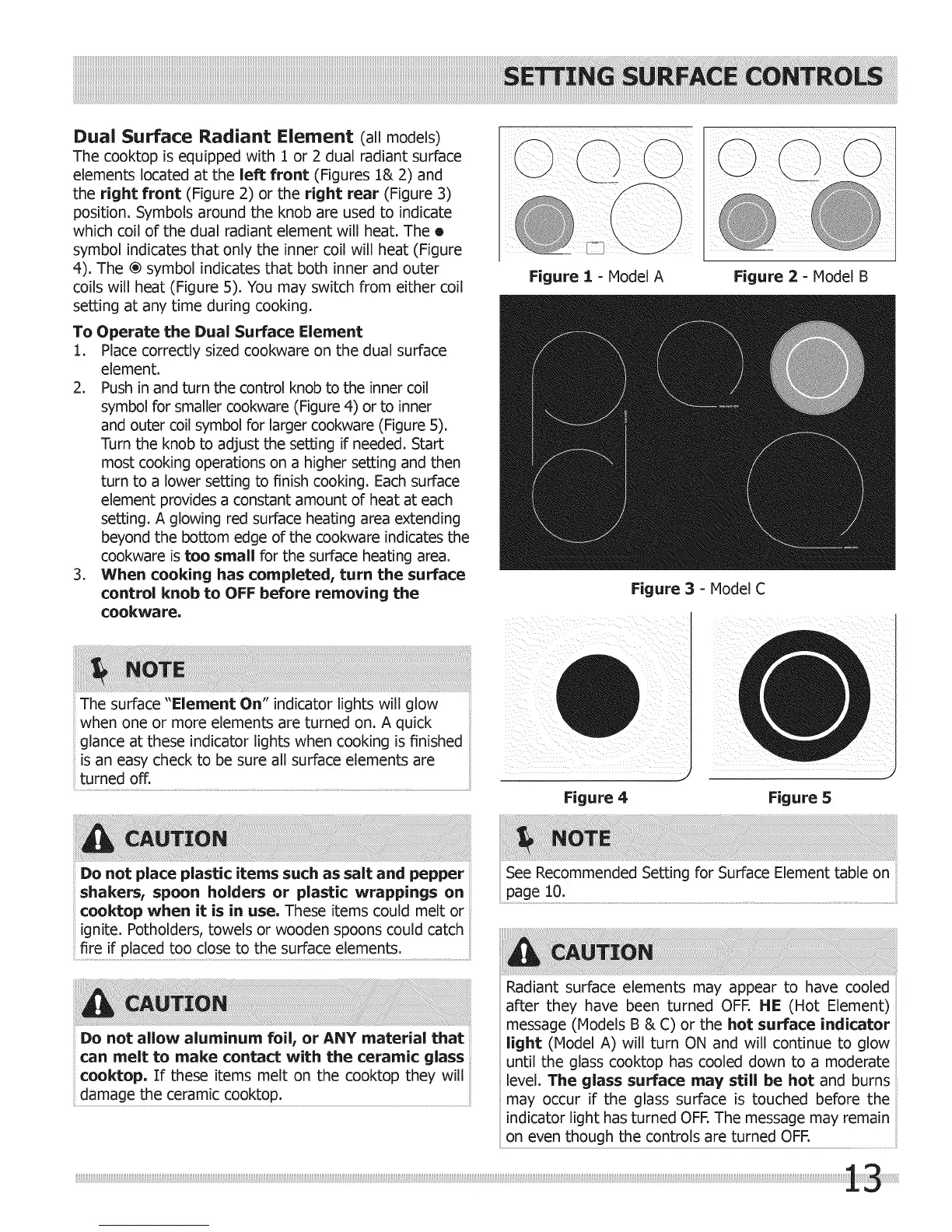 The cooktop is equipped with 1 or 2 dual radiant surface