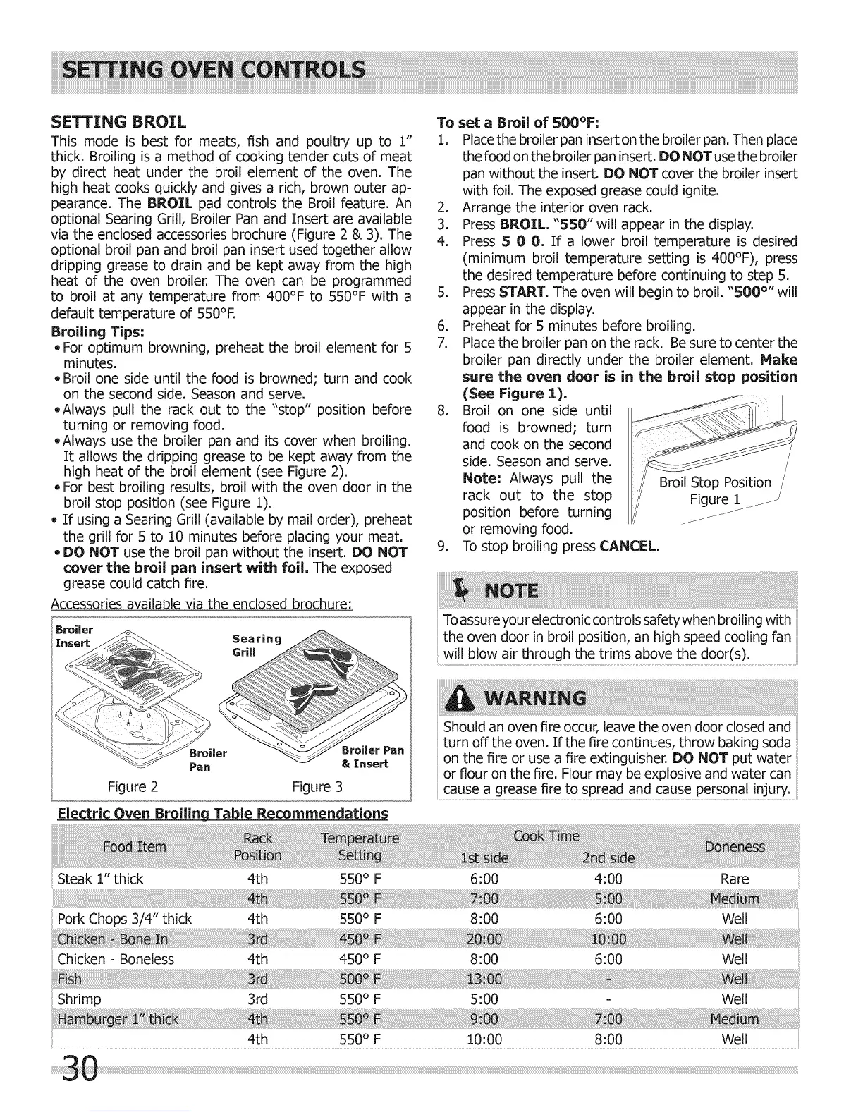 Electric Oven BroilinQ Table Recommendations