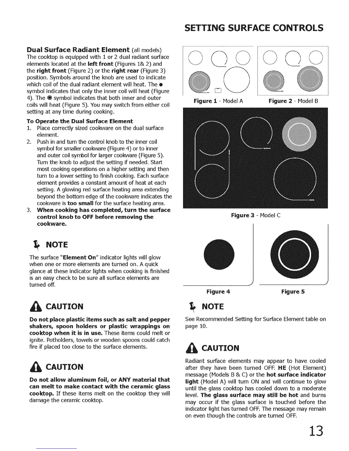 The cooktop isequipped with 1 or 2 dual radiant surface