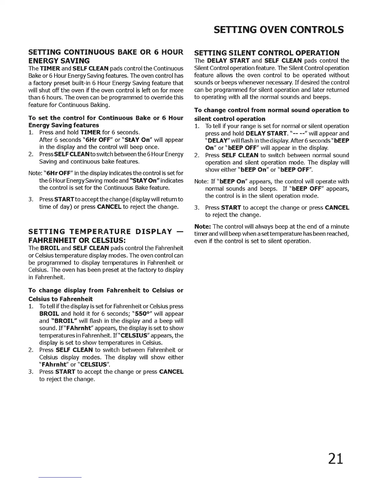 SETTING CONTINUOUS BAKE OR 6 HOUR