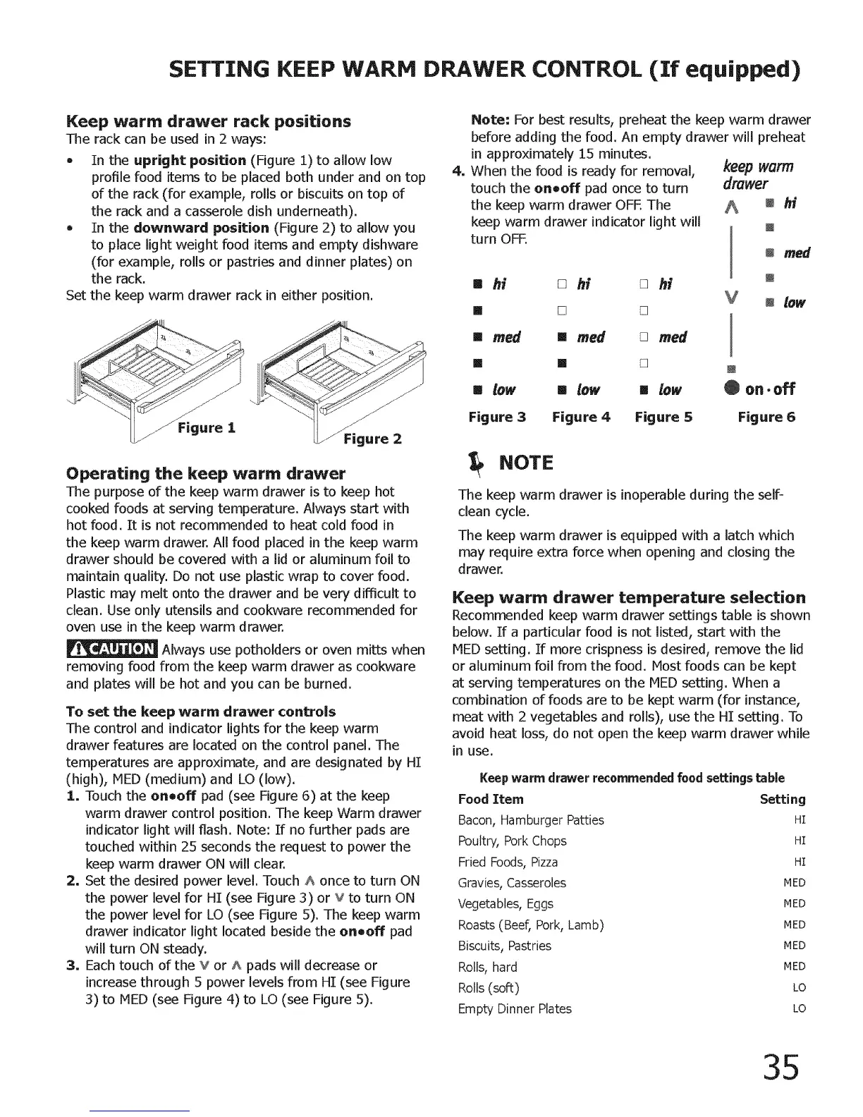 SETTING KEEP WARH DRAWER CONTROL (If equipped)