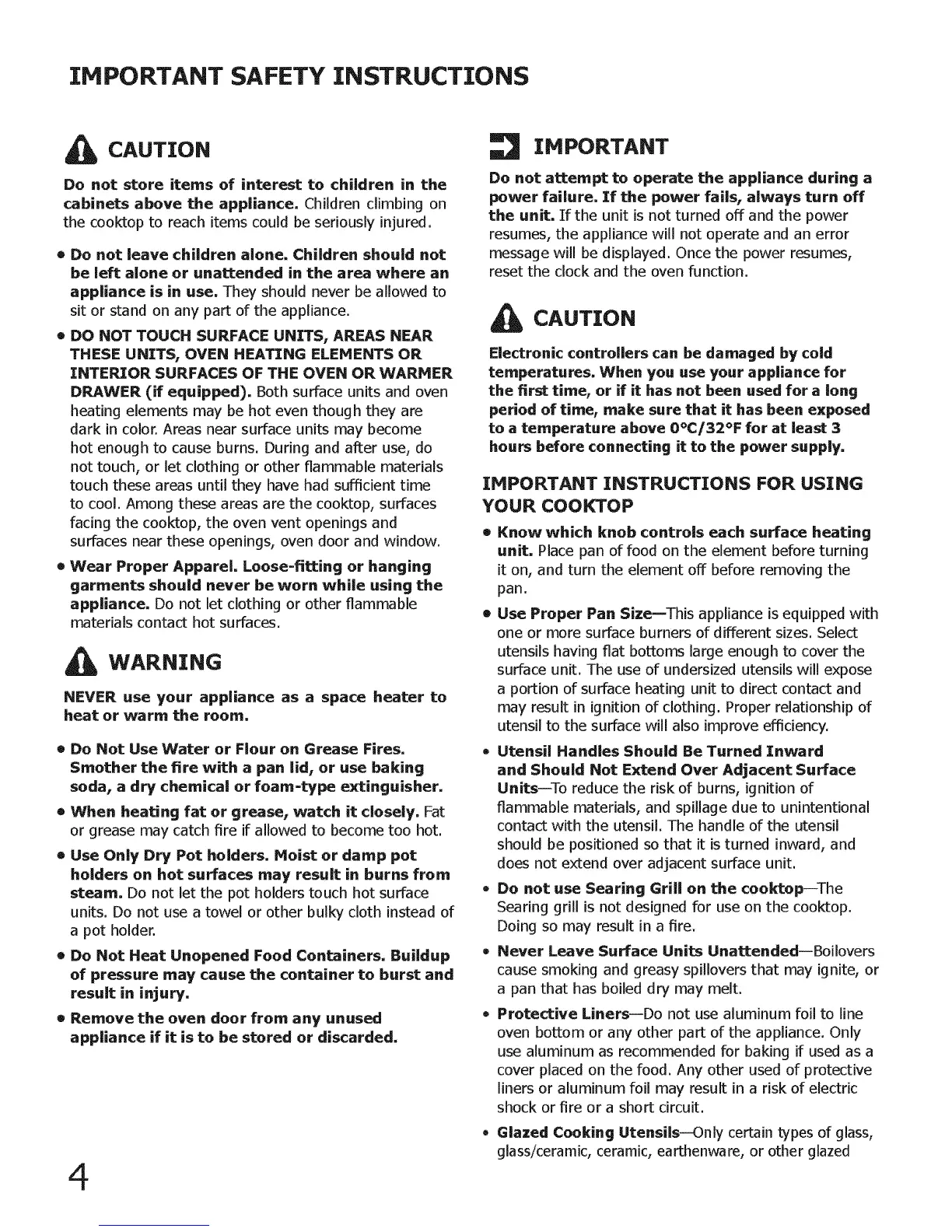appliance. Do not let clothing or other flammable