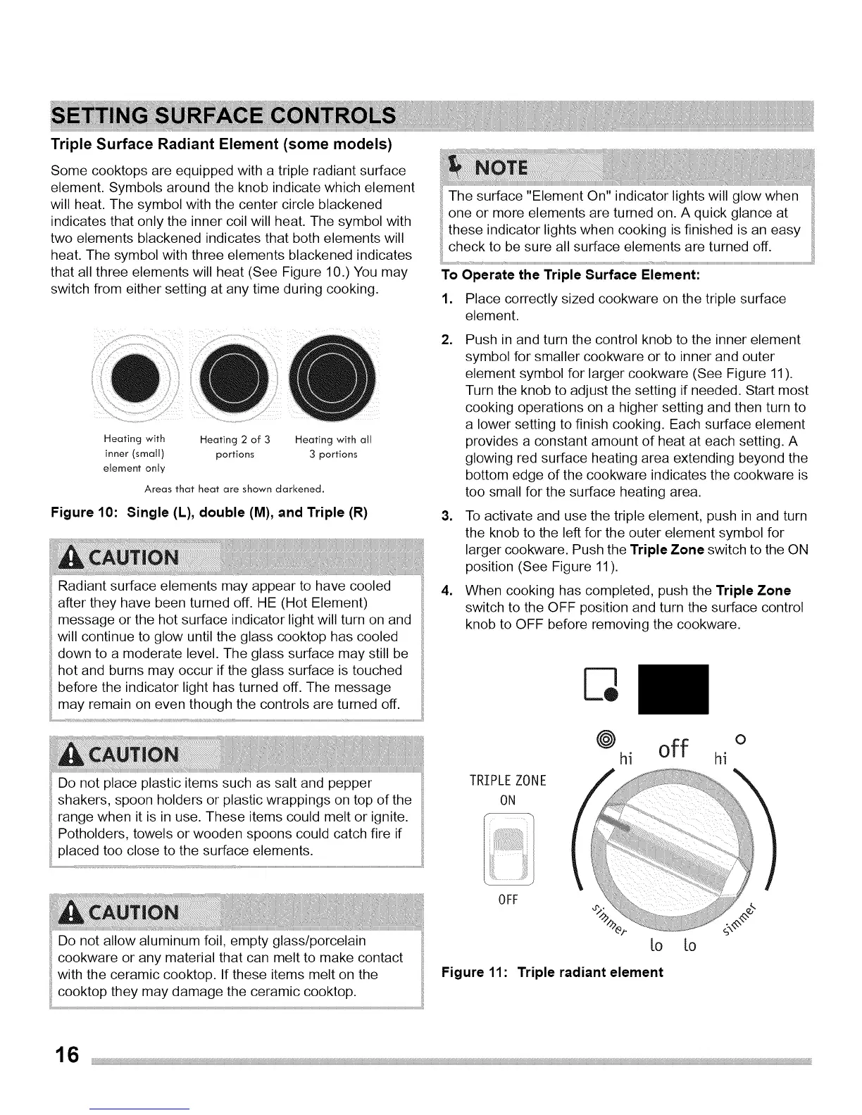 Frigidaire FGES3065PFD - To Operate the Triple Surface Element; Triple Radiant Element; Triple Surface Radiant Element