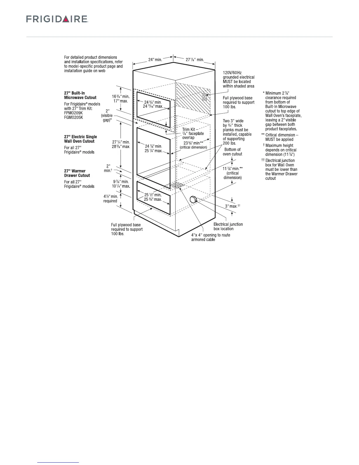 27" Combination Installation Specifications