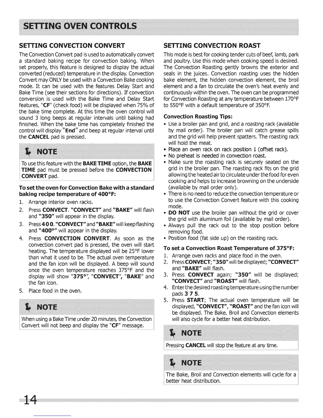 SETTING CONVECTION ROAST